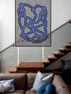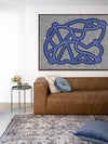 Ngapa Jukurrpa III Blue Canvas Art Print - Inspired by the Water Dreaming, this incredibly intricate Indigenous Aboriginal artwork features thousands of meticulously placed dots, culminating in a maze-like shape in a colour palette of black and white, with royal blue.
