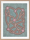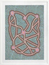 Ngapa Jukurrpa III Pink Framed Art Print - Inspired by the Water Dreaming, this incredibly intricate Indigenous Aboriginal artwork features thousands of meticulously placed dots, culminating in a maze-like shape in a colour palette of pale, pastel blue, warm brown and dusty pink.