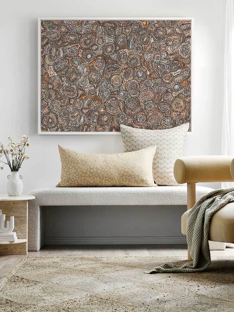 Complimenting any decor and colour theme in your home or office space, this collection boasts intensely cool palettes, from midnight blue and saltwater teal, along with warm palettes of scorched earth red, sunset orange and sandy white. Any of these pieces will be sure to bring a special Dreamtime into your favourite room.