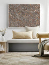 Ngapa Jukurrpa (Water Dreaming) Canvas Art Print - Highly detailed and contemporary in style, this breathtaking piece features a cluster of uneven shapes, short dashes, and longer flowing lines, all moving together in harmony. A fairly neutral palette includes predominantly beige tones, with touches of bright orange, blush and yellow. Perfect for amplifying any wall, and easy to incorporate with various interior styles.