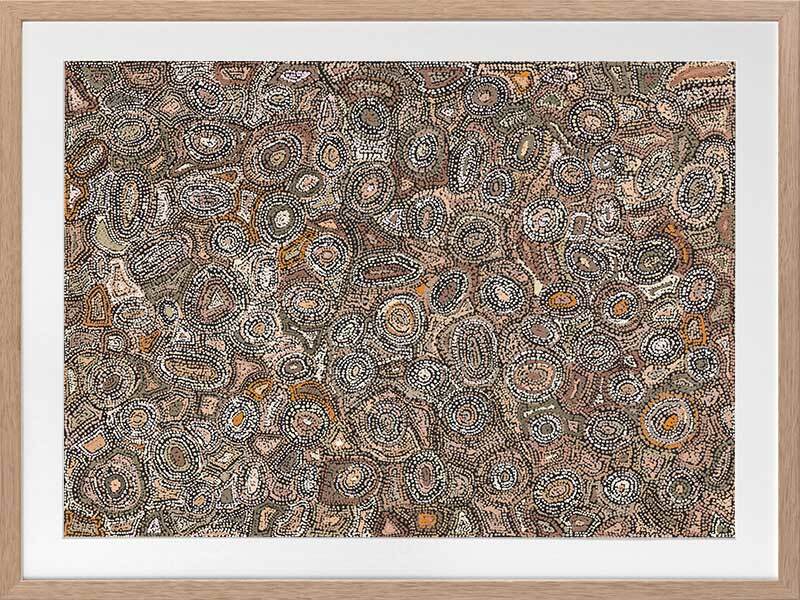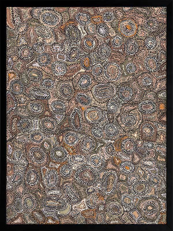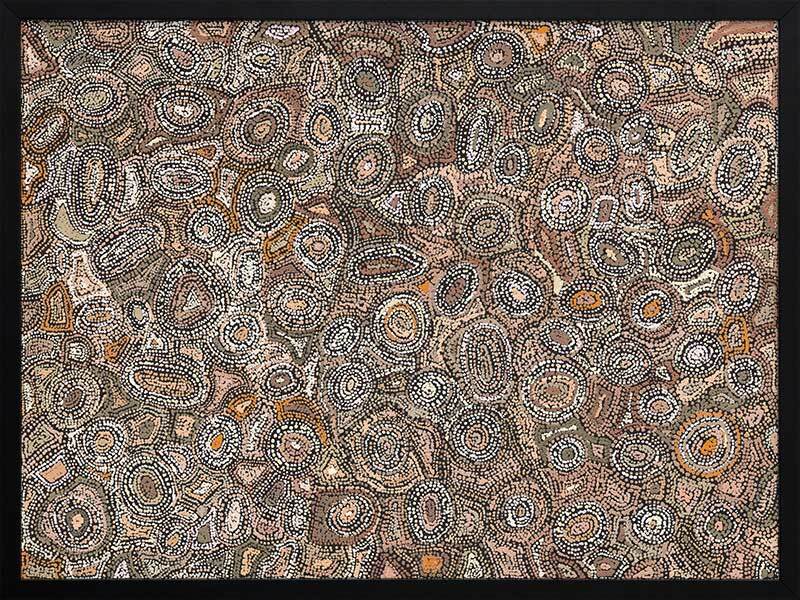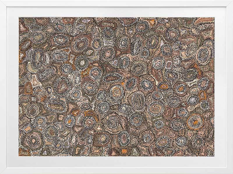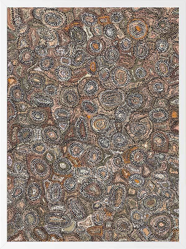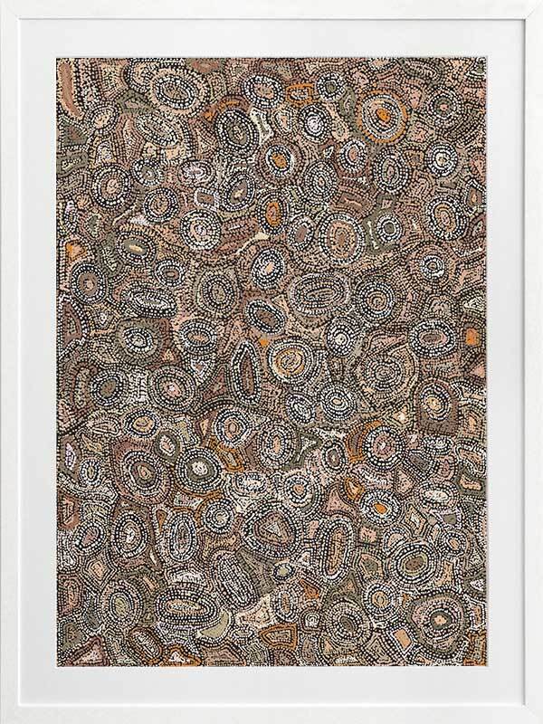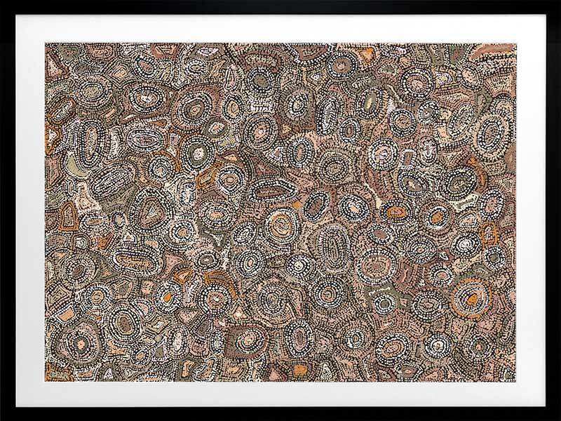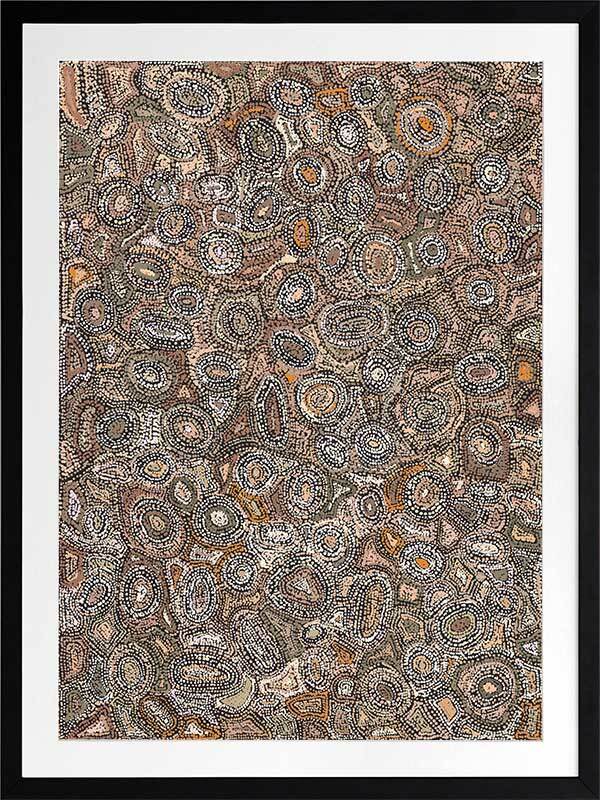 Ngapa Jukurrpa (Water Dreaming) - A4 - 21.0x29.7cm - Standard Black Frame with Mat Board - Portrait