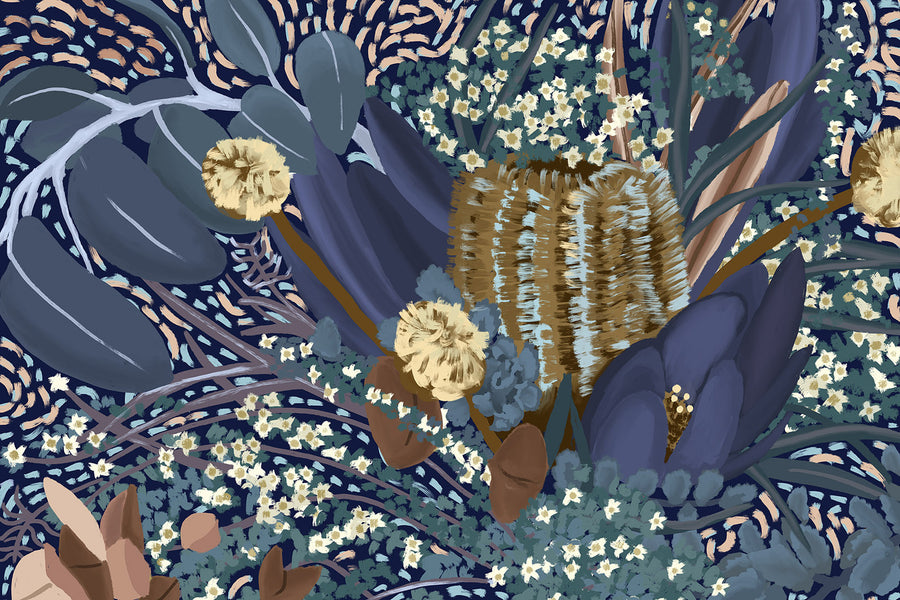 A widespread array of freshly bloomed native Australian plants will bring an explosion of life and colour to your space. You'll find waratahs, banksias, eucalyptus, and more brought to life using painterly brush strokes and abstract backgrounds. This collection also features unique compositions for an impactful, captivating look.