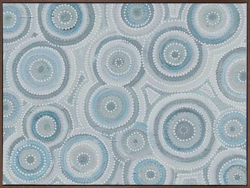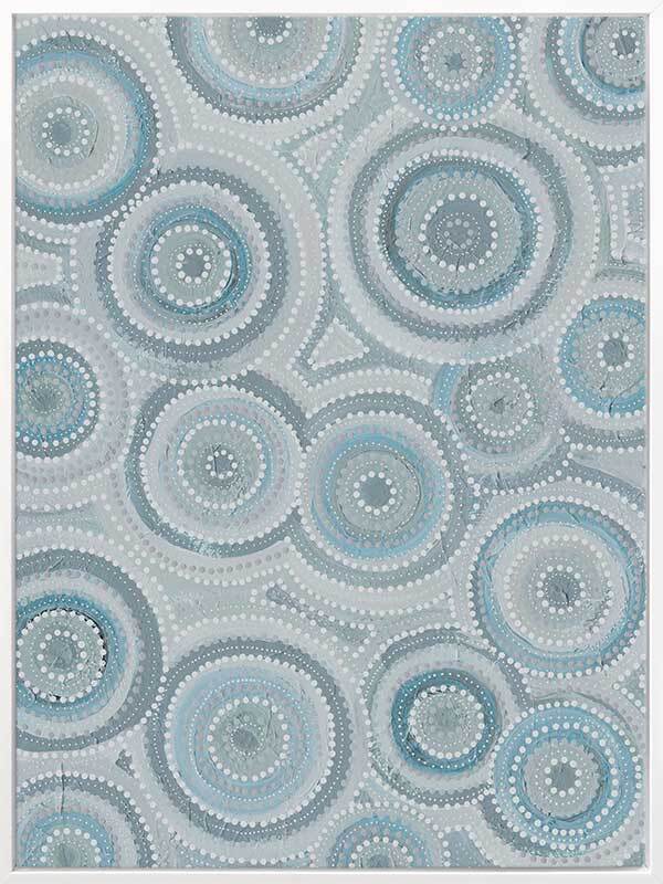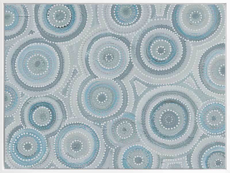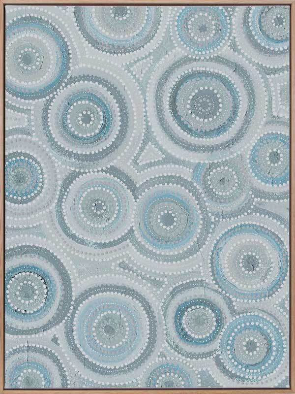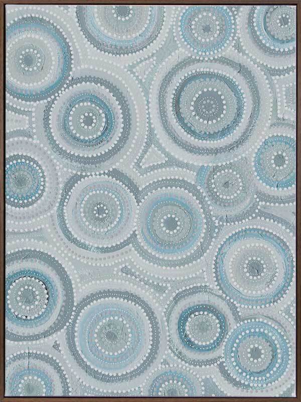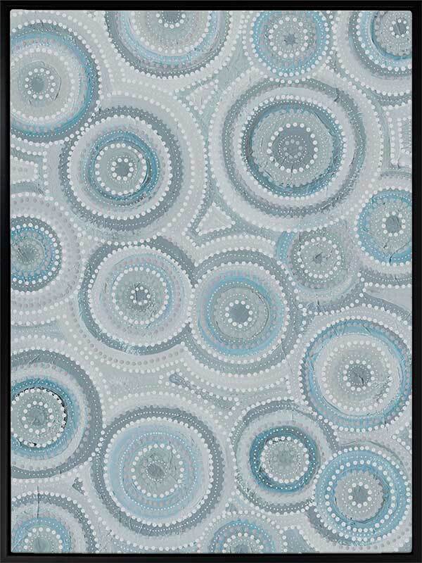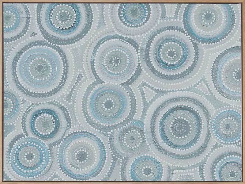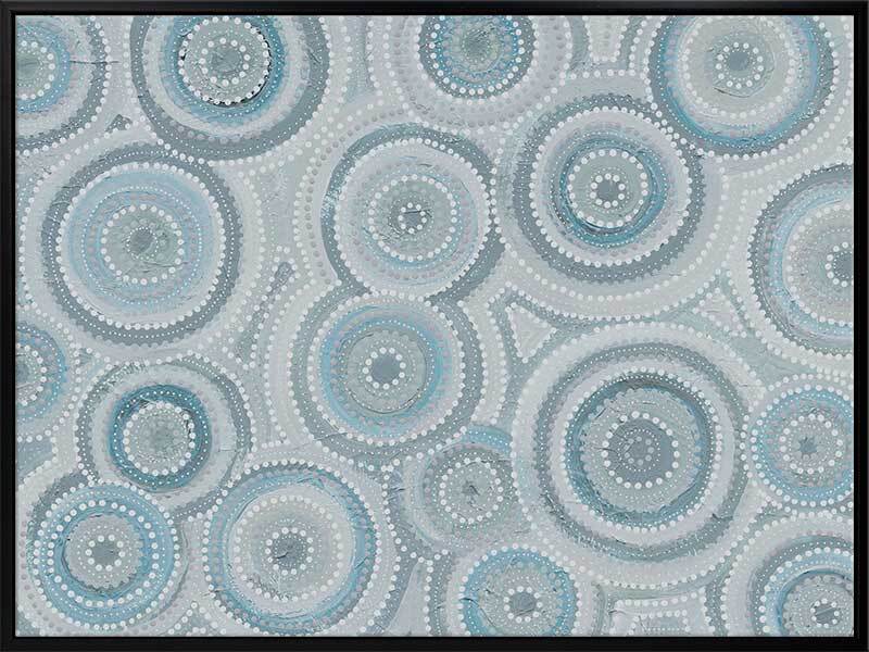 Nirrangi ll Light Blue Canvas Art Print - Transform your space with this beautiful Aboriginal artwork by Wiradjuri artist, Amanda Hinkelmann. Featuring intricate concentric circles, this piece showcases a serene palette of soft, muted blues, bringing a sense of calm and reflection. Perfect for adding depth, this artwork enhances any room with its thoughtful design and peaceful beauty.