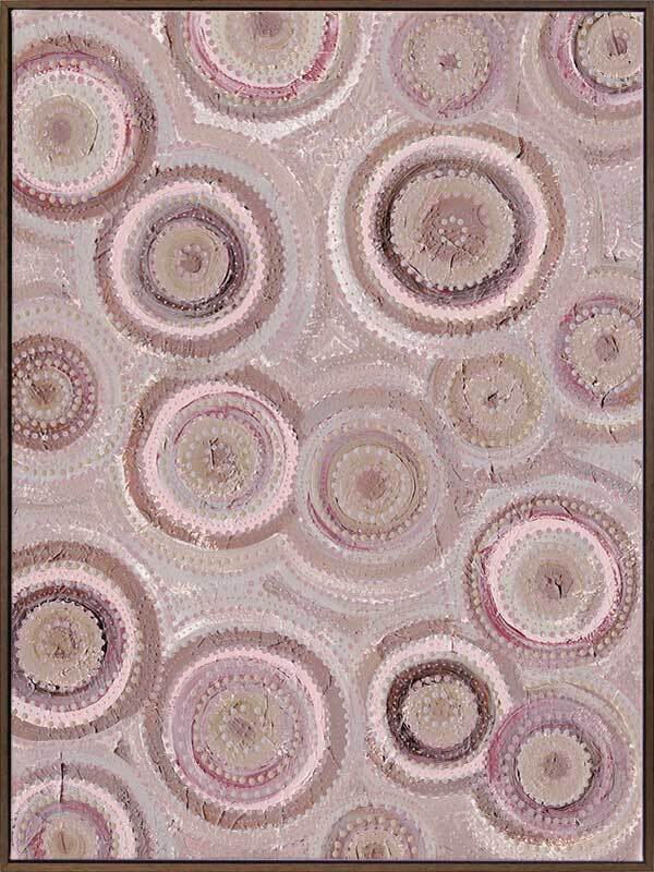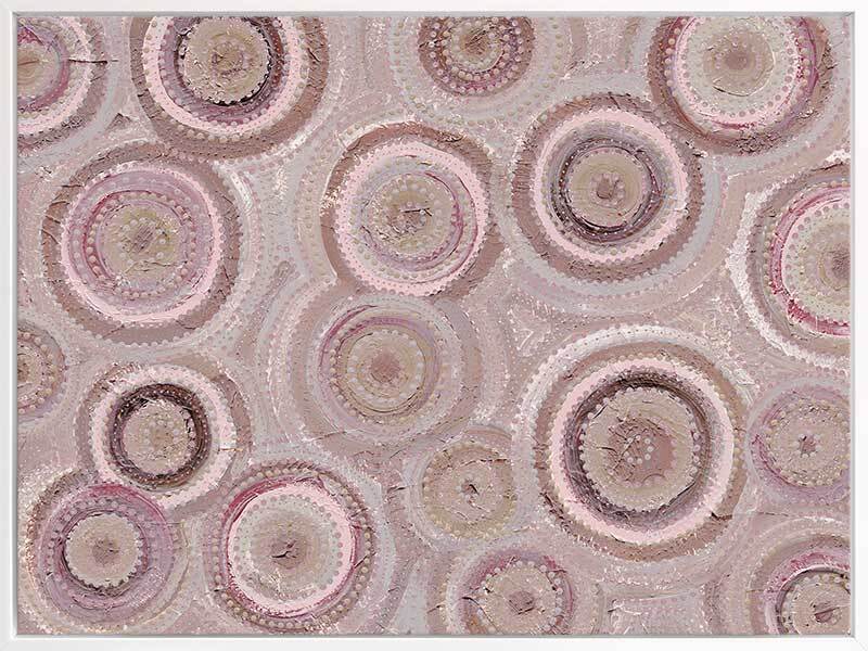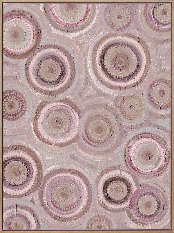 Nirrangi ll Purple Canvas Art Print - Transform your space with this beautiful Aboriginal artwork by Wiradjuri artist, Amanda Hinkelmann. Featuring intricate concentric circles, this piece showcases a serene palette of soft, muted purple shades, bringing a sense of calm and reflection. Perfect for adding depth, this artwork enhances any room with its thoughtful design and peaceful beauty.