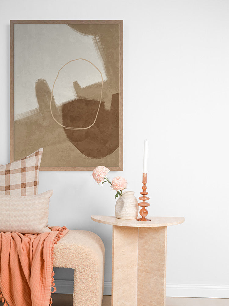 Nonchalant Brown Framed Art Print - With an effortless feel to it, this abstract artwork features visible brush strokes and messy line work for a calm, organic feel. A simple palette of ivory white, warm brown and beige makes this piece easy to incorporate with your existing interior.