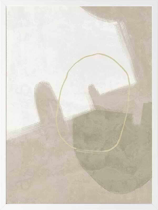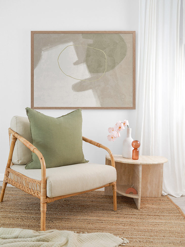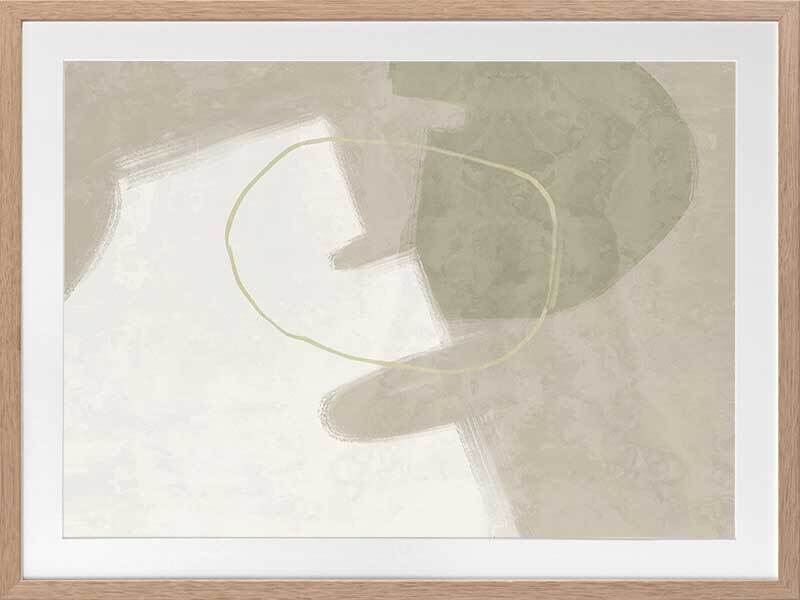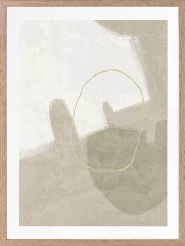 Nonchalant Light Green Framed Art Print - With an effortless feel to it, this abstract artwork features visible brush strokes and messy line work for a calm, organic feel. A simple palette of ivory white, light olive green, and beige makes this piece easy to incorporate with your existing interior.