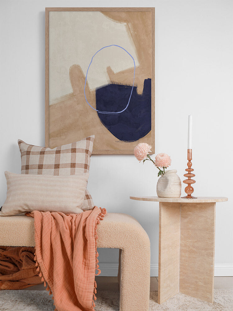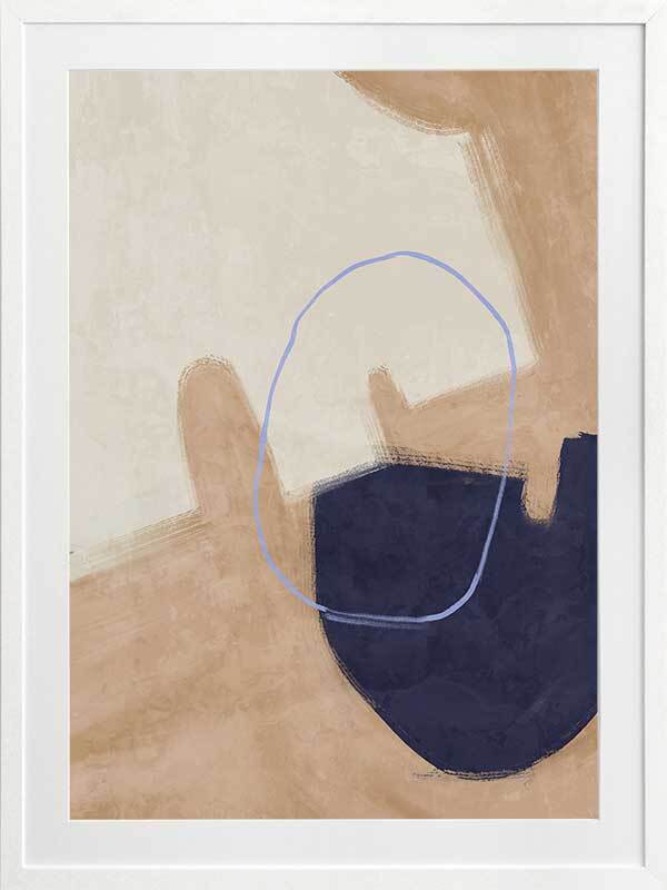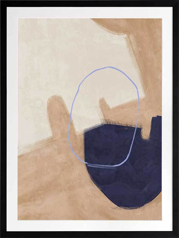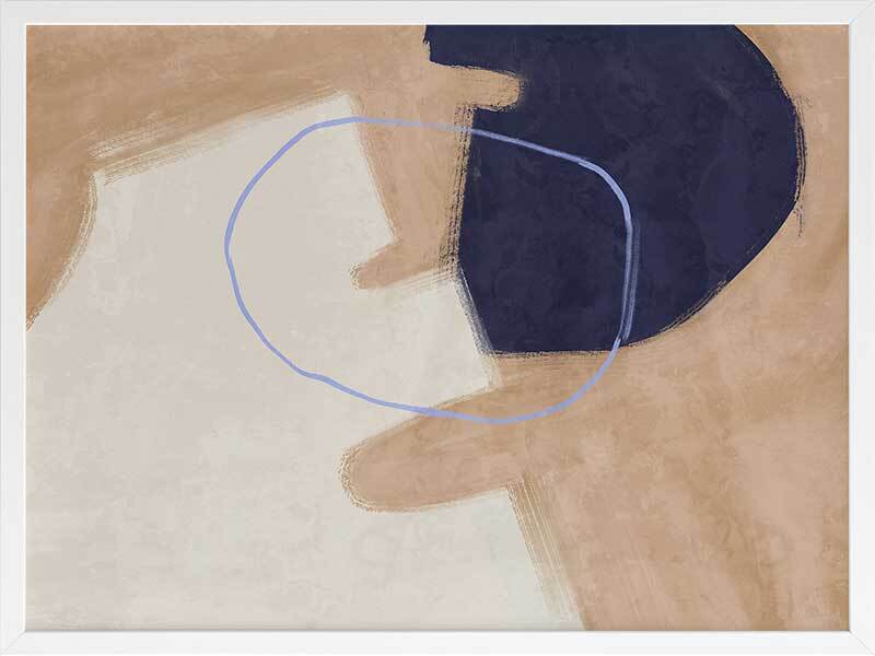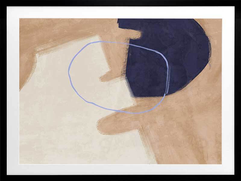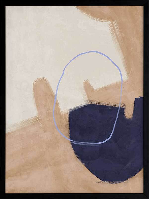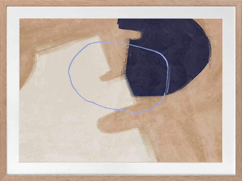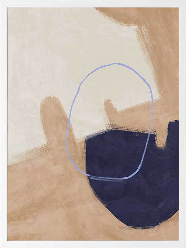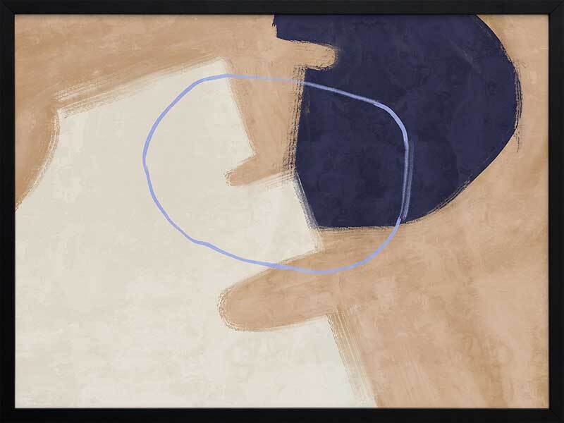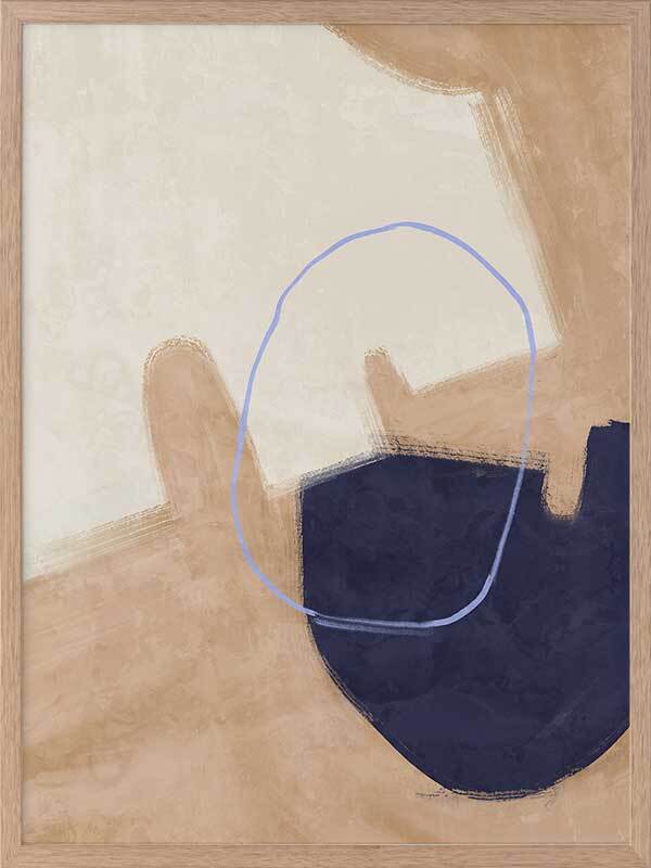 Nonchalant Navy Framed Art Print - With an effortless feel to it, this abstract artwork features visible brush strokes and messy line work for a calm, organic feel. A simple palette of sand, navy blue, and beige makes this piece easy to incorporate with your existing interior.
