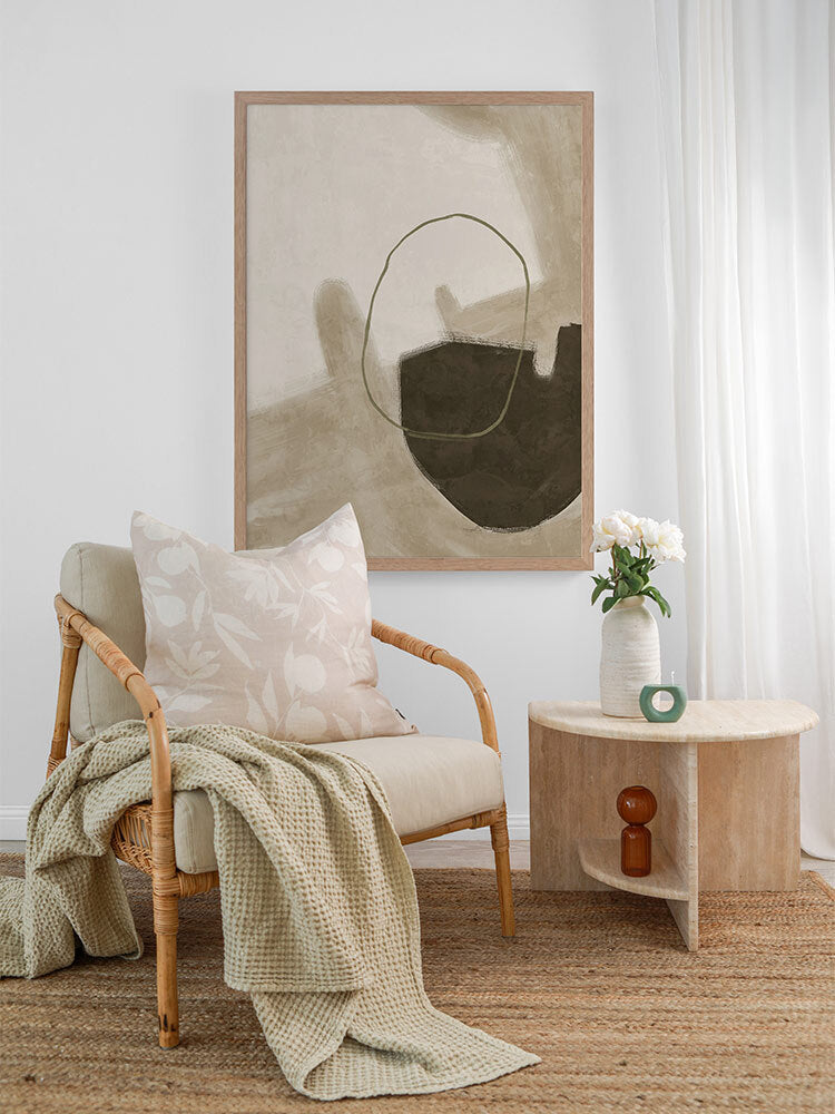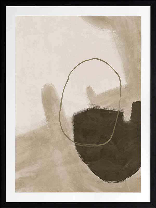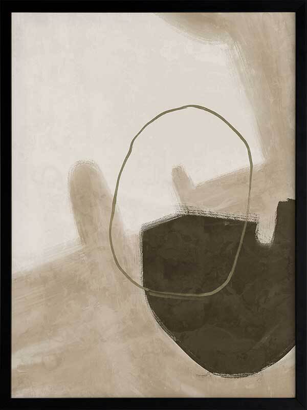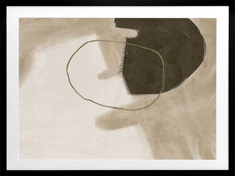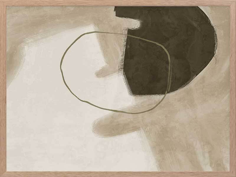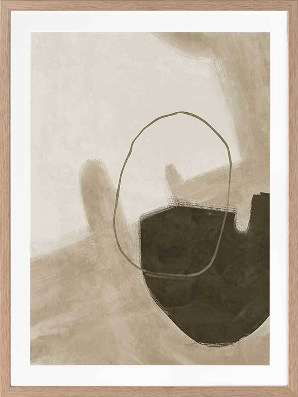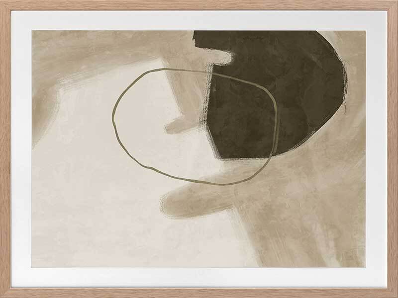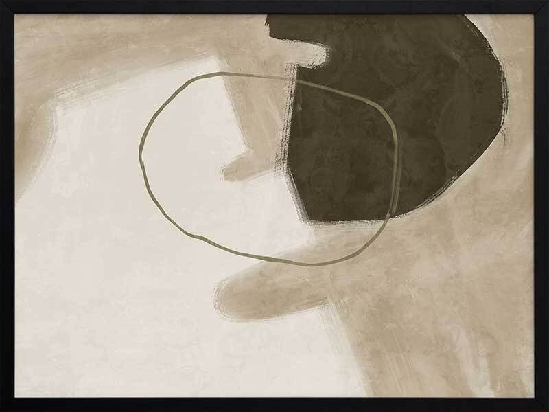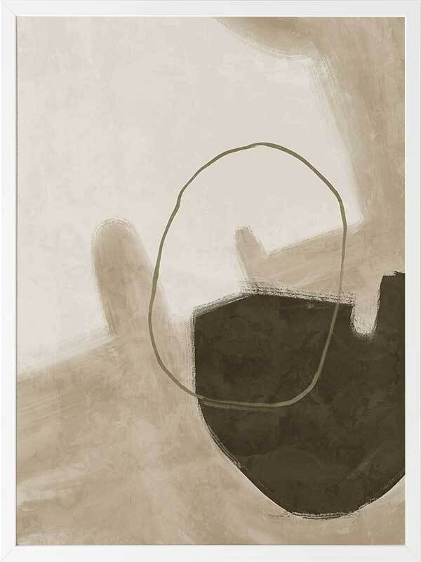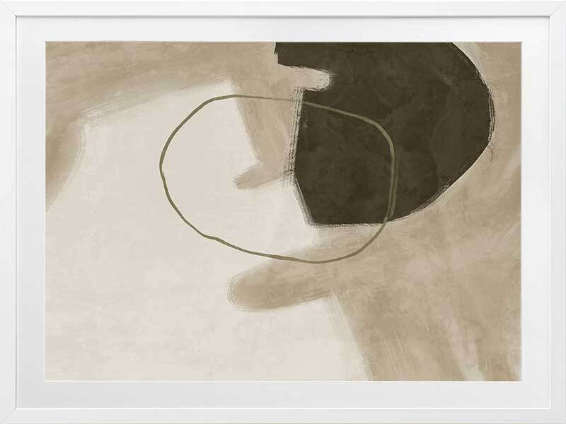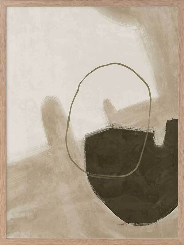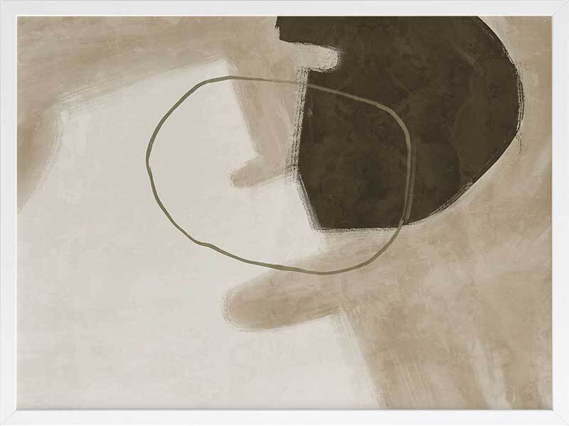 Nonchalant Neutral Framed Art Print - With an effortless feel to it, this abstract artwork features visible brush strokes and messy line work for a calm, organic feel. A simple palette of sand, dark brown, and beige makes this piece easy to incorporate with your existing interior.