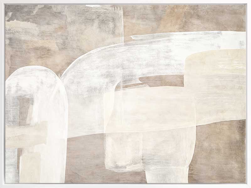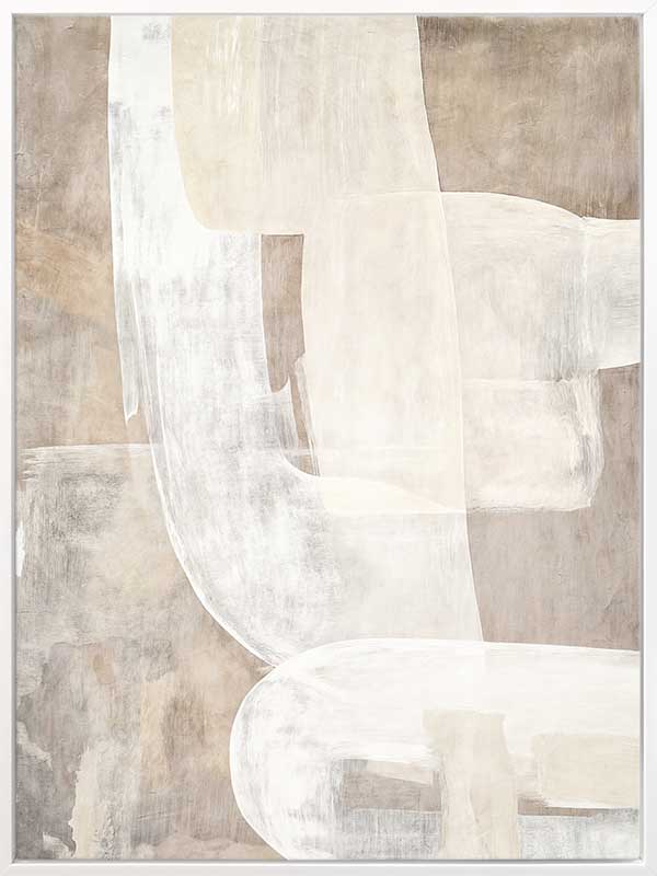 Nostalgic Mood III Canvas Art Print - Elegant, soft, and calming, this minimalist abstract wall art features subtle shades of beige, ivory, and grey. Gentle geometric shapes interplay with textured brushwork, creating a sophisticated visual harmony perfect for interiors seeking tranquillity and refined modern style. This piece evokes warmth, serenity, and quiet contemplation, effortlessly complementing contemporary decor.