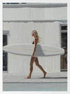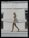 Not A Care Framed Art Print - Bring the carefree essence of California surf culture to any room with this art print by Interior Designer Shaynna Blaze. A blonde surfer girl walks with her white surfboard in hand after a day on the waves. With retro influences, this wall art exudes a laid-back lifestyle, blended with sophisticated energy and neutral, cream-coloured shades that complement any interior design style. Perfect for a living room or bedroom, this limited edition artwork from our exclusive collection brings a breath of fresh coastal air into your home decor.
