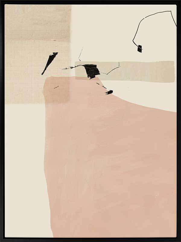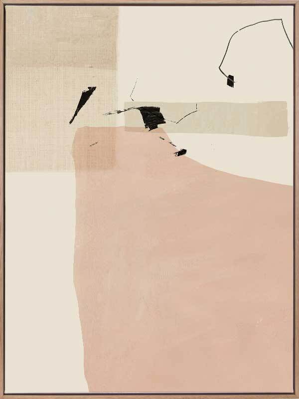 Nude Mood Canvas Art Print - Quietly confident in its cohesion, this striking piece will bring energy to any room. On a beige base, textural light brown, dusty pink and black freehand lines and shapes take form. Generous in warmth, it adds depth as a backdrop to soft furnishings and strong lines alike. The highlights of black allows for enough ambiguity to create your own story within this piece. Perfect in any space that needs a lift of happiness and joy.