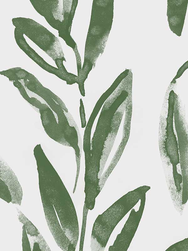 Olive Branch Wallpaper - A fresh and organic design that features watercolour painted leaves patterned against a solid coloured background. Designs are available in olive, black, smoke, natural, grey and blush colour variations.