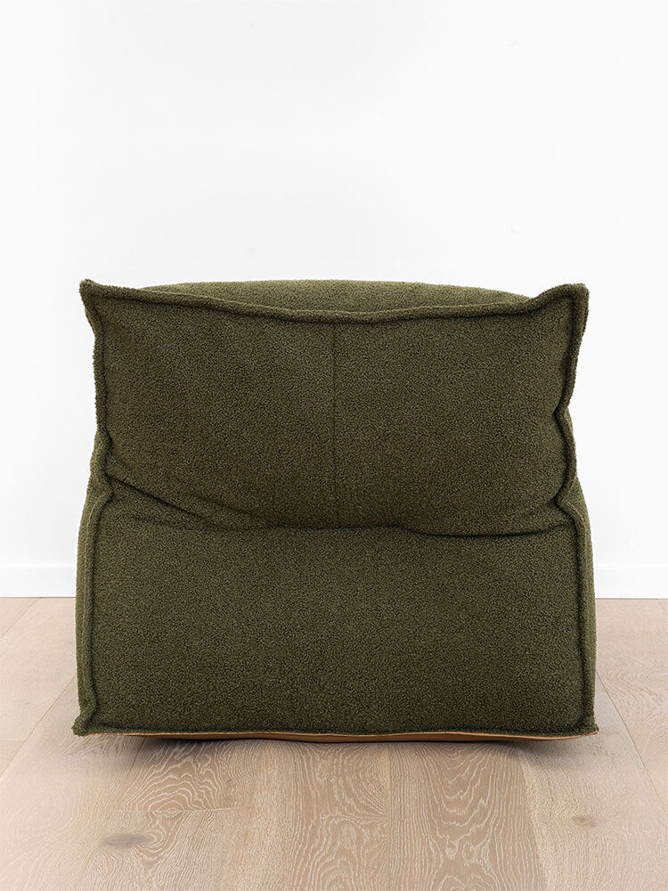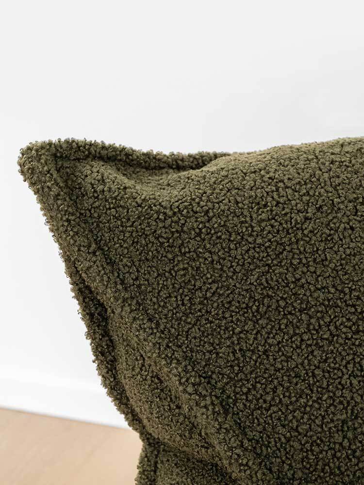 Olive Green Bean Bag Lounger - Kick back and relax in style with our structured chaise bean bag lounger. Luxuriously soft, the Olive Green Bean Bag Lounger cover is made from a beautifully texured and durable boucle fabric in a dark, khaki green colour. All of our bean bag covers are fully lined with an easy to fill inner cover, and feature a hidden zipper for added comfort and style. Please note: this product is a cover only. Beans will need to be purchased separately.