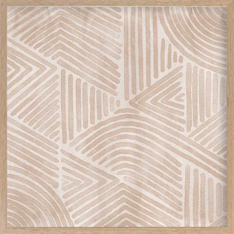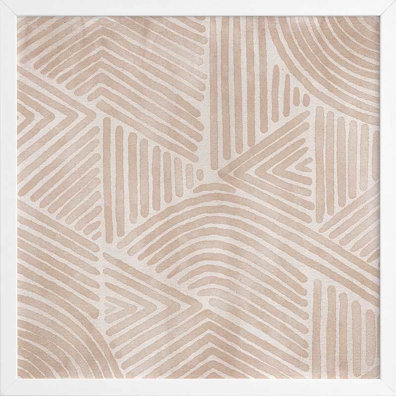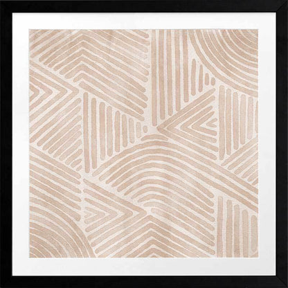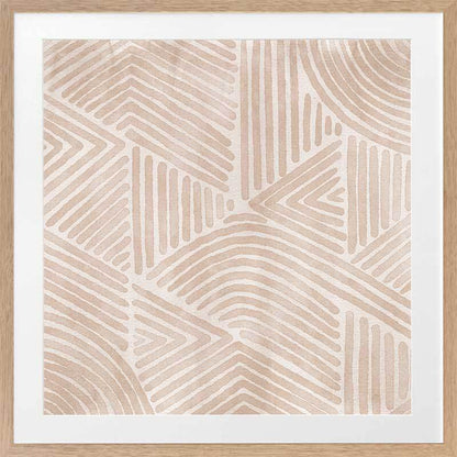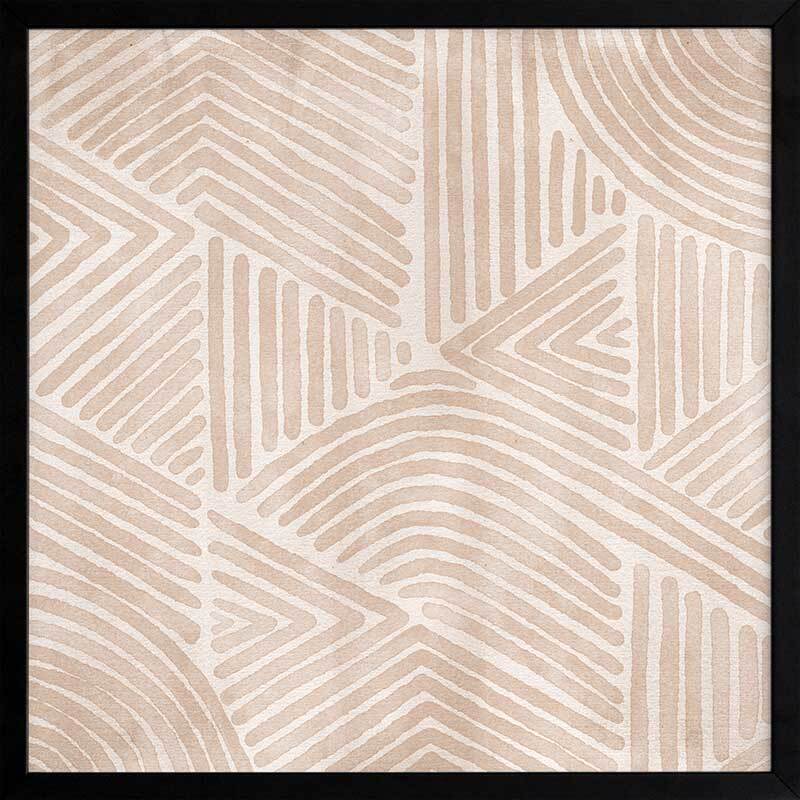 On Repeat IV Framed Art Print - Not bold nor passive, this piece is a beauty for abstract lovers everywhere. This has an organic energy to it, with an eclectic blend of arrow, curved and straight lines. An eye-catching arrangement of shapes with a clean, monotone palette of warm tan with a lighter cream, beige background.