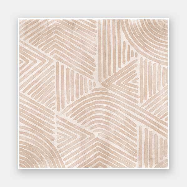 On Repeat IV Unframed Art Print - Not bold nor passive, this piece is a beauty for abstract lovers everywhere. This has an organic energy to it, with an eclectic blend of arrow, curved and straight lines. An eye-catching arrangement of shapes with a clean, monotone palette of warm tan with a lighter cream, beige background.