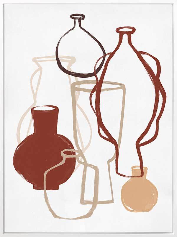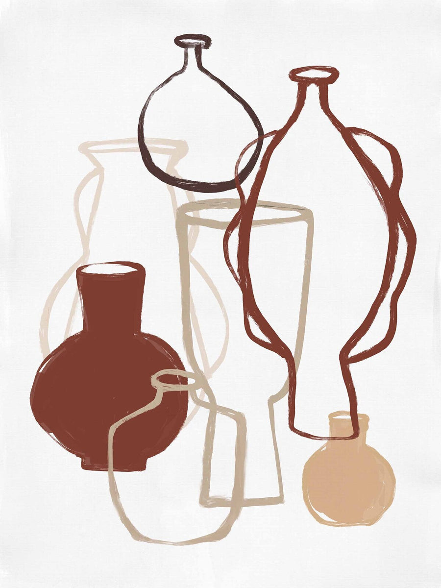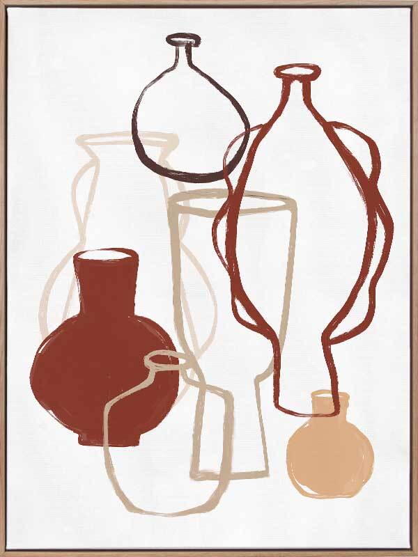 Bring the colourful warmth of Moroccan inspired interior design into your space with our Marrakech Collection. These abstract artworks feature still-life drawings of vessels, with flat colours and limited shade combinations for a stripped-back feel. Peachy pink, sandy beige, warm orange-brown, and deep azure blue stand out against neutral tones for an overall understated vibe to suit any interior style. With different colourways to choose from, you can mix and match each design for your own customised look. Reminding us of warm nights in a mysterious oasis, surrounded by coloured glass, decorative woollen rugs and handmade accessories, this collection adds an elegant touch to any space.