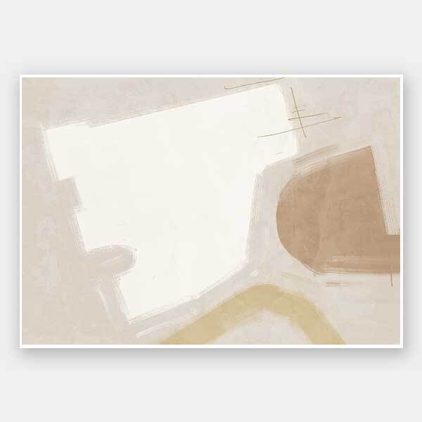 Open-Minded Neutral Unframed Art Print - With odd shapes, visible brush strokes, and randomised line work, this abstract artwork instantly creates movement and brings character to your space. A soft palette of beige, white, and sand gives this piece a minimalistic feel.