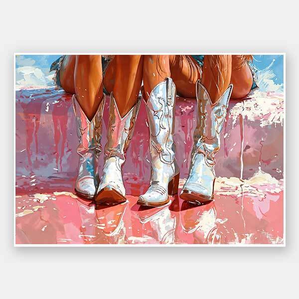 Our Song Poster - Whether it's a pair from Lucchese or they're your fave cowboy boots, slip them on and get excited for endless memories of your dream Taylor Swift concert. This poster of two Swifties sitting together combines glimmering silver shades with pink and blue hues to create a striking look, perfect for paying homage to your Swiftie roots.