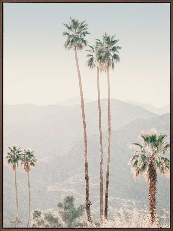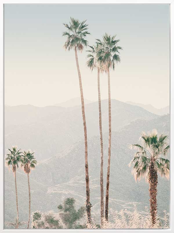 Palm Springs II Poster Print. This photographic poster print of tall palm trees and mountain ranges fill the view of the tropical country side in your wall space. This is exactly as you would imagine Palm Springs to look like. Pairs with Palm Springs I Poster Print.