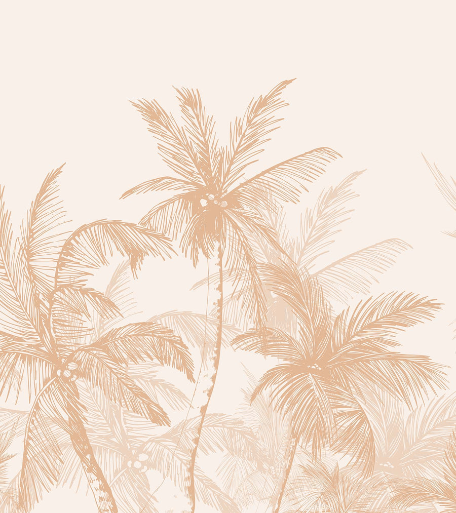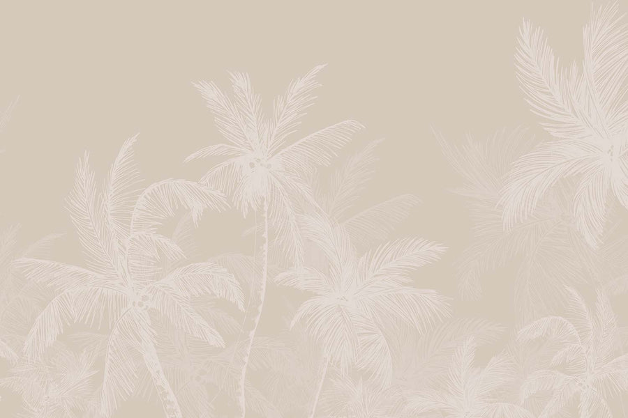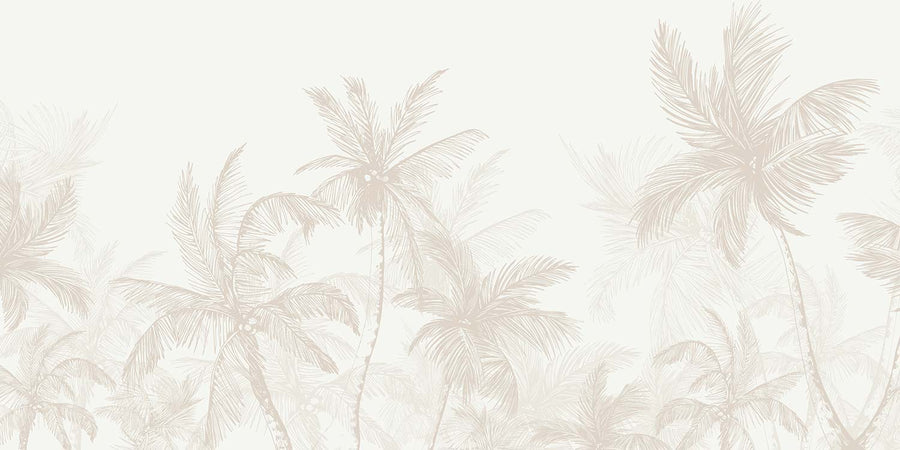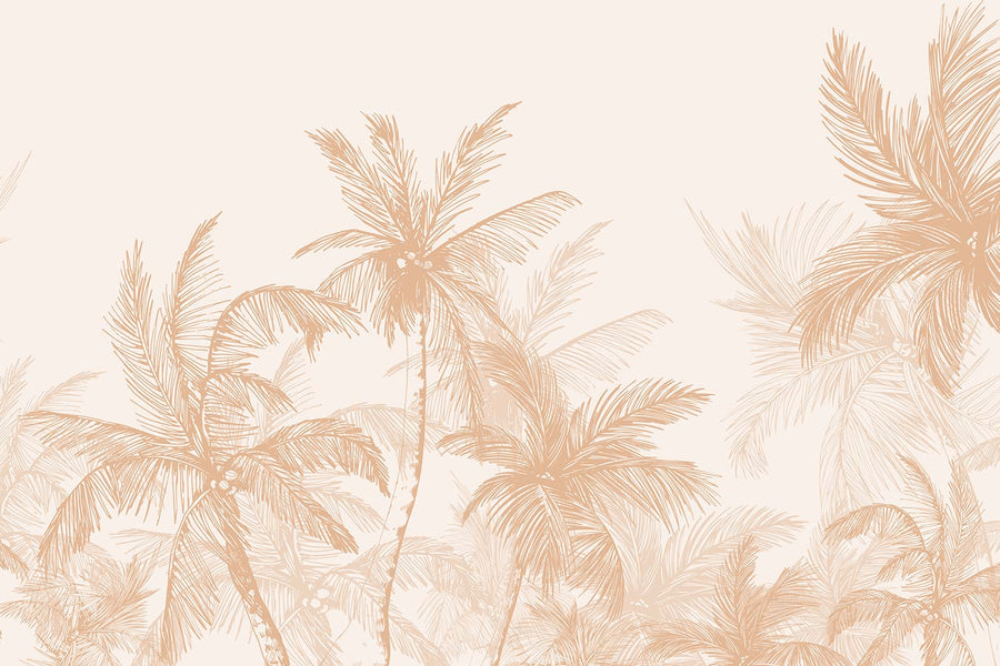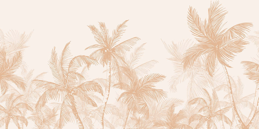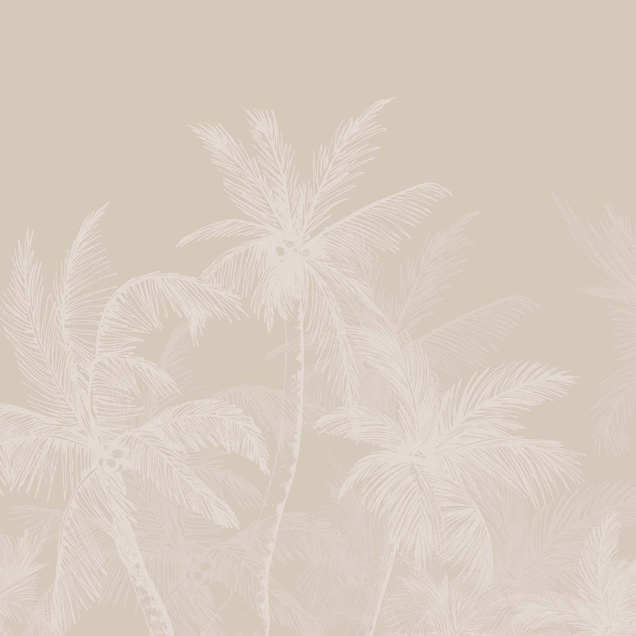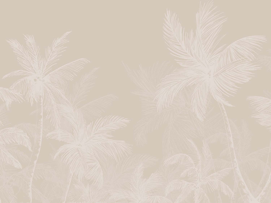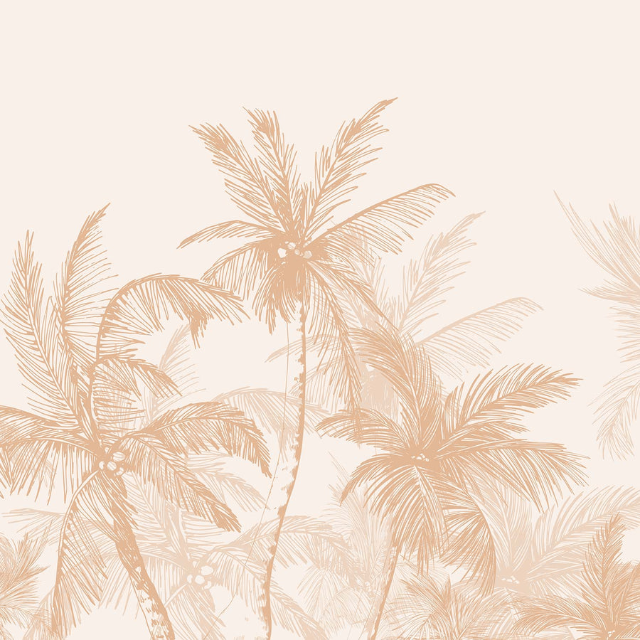 Palm Tree Haze Wallpaper Mural - Soft, atmospheric, and effortlessly cool, this wallpaper mural captures the dreamy allure of swaying palm trees veiled in a gentle golden hour haze.
