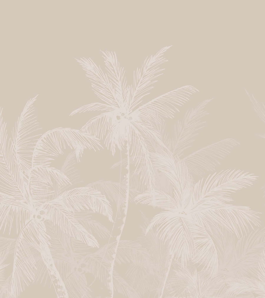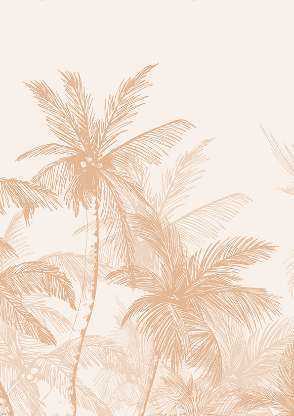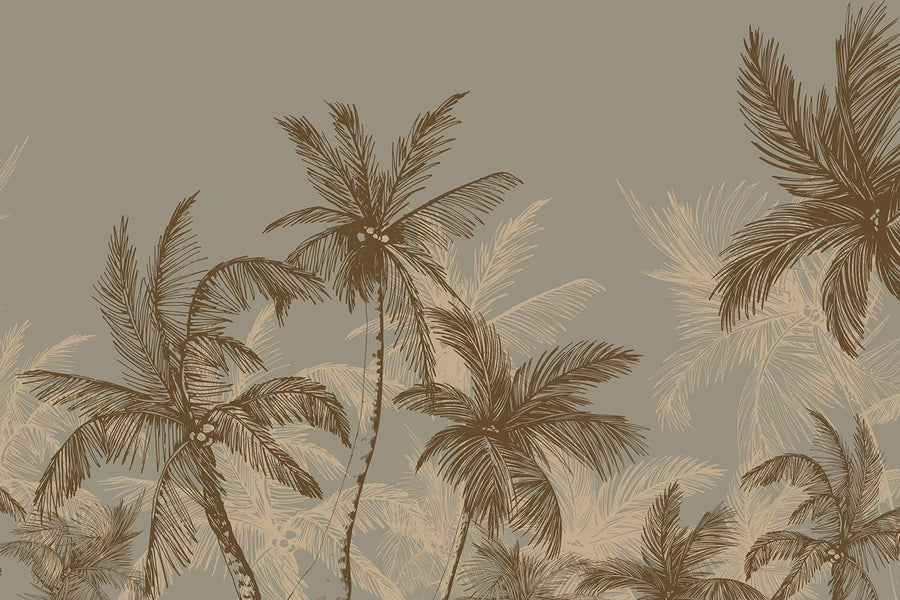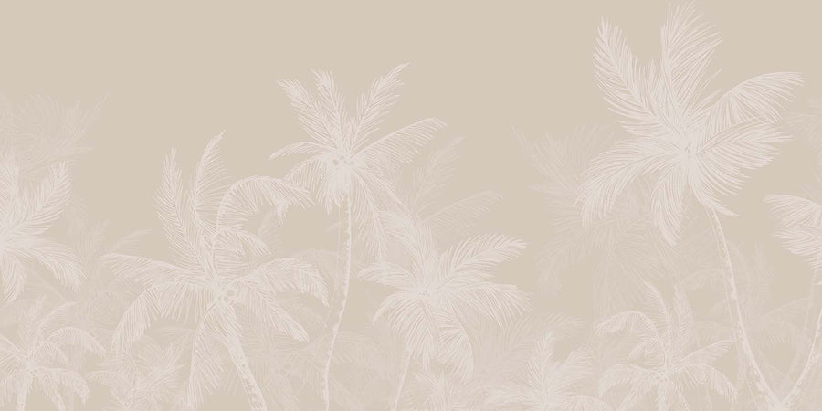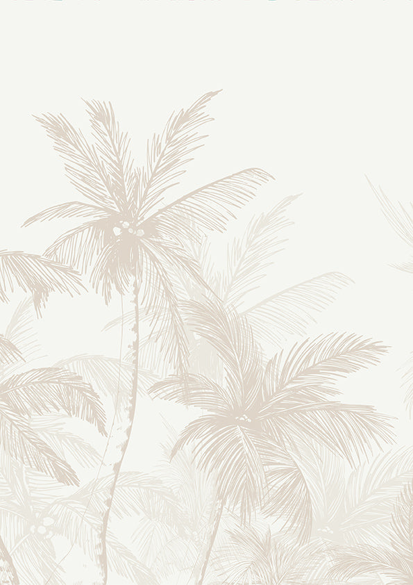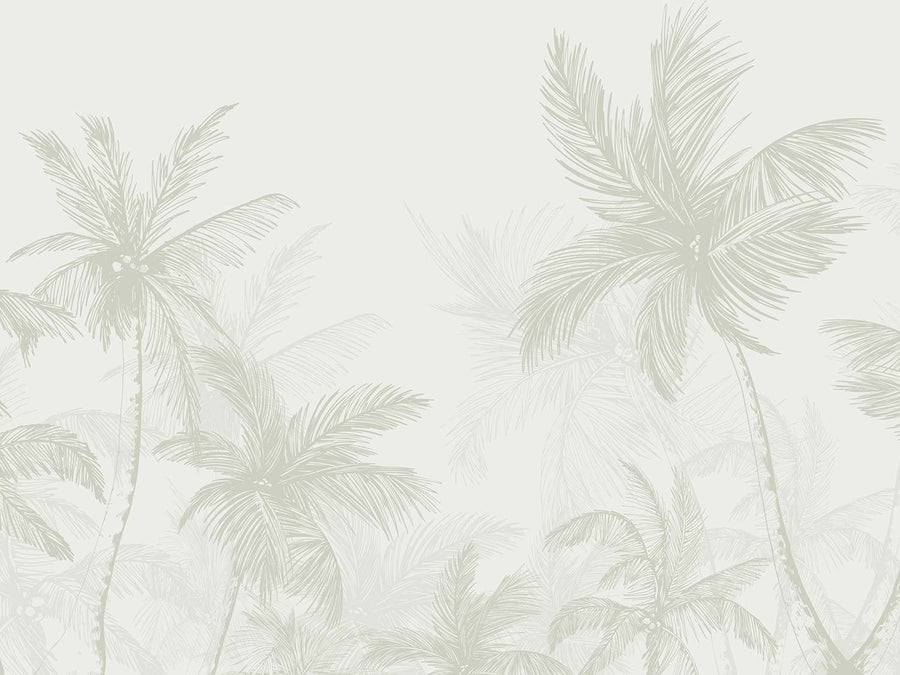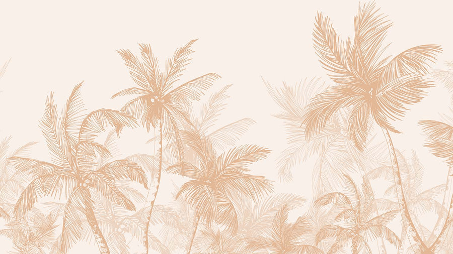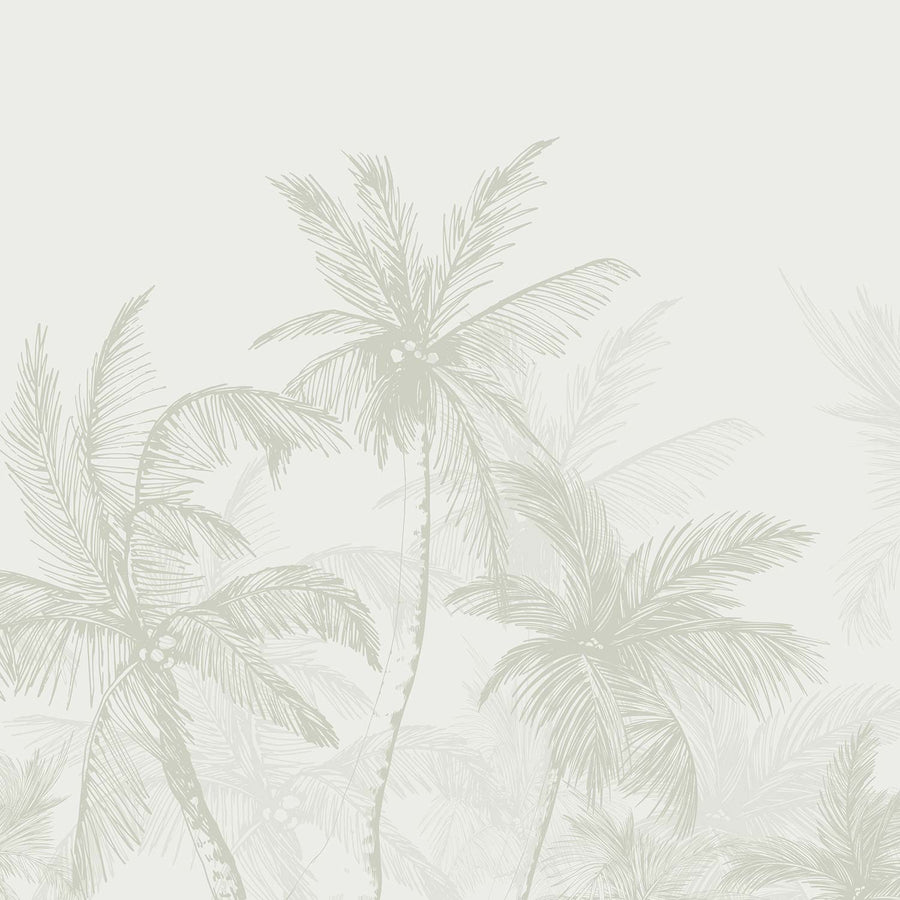Palm Tree Haze Wallpaper Mural - Soft, atmospheric, and effortlessly cool, this wallpaper mural captures the dreamy allure of swaying palm trees veiled in a gentle golden hour haze.