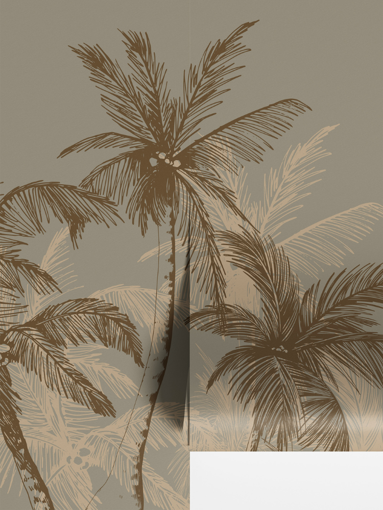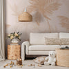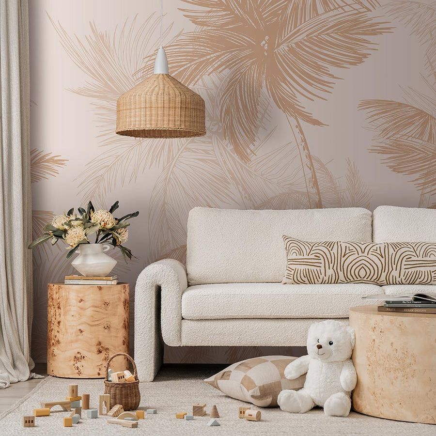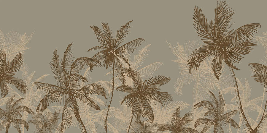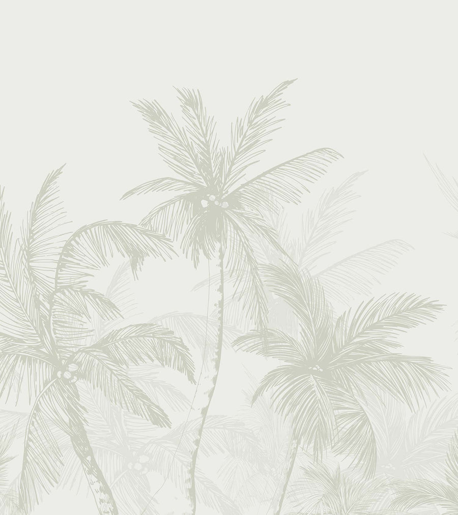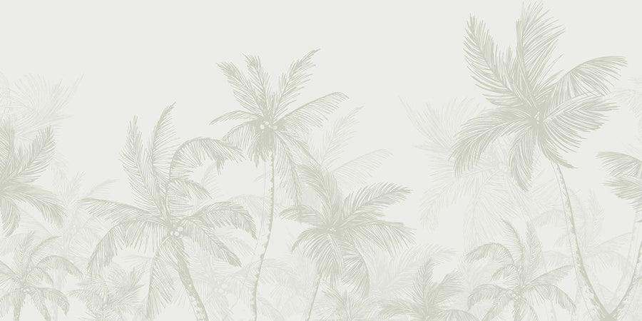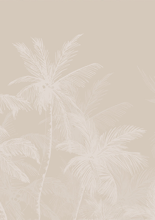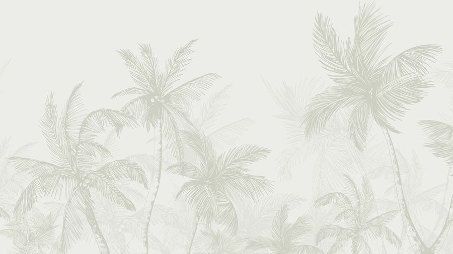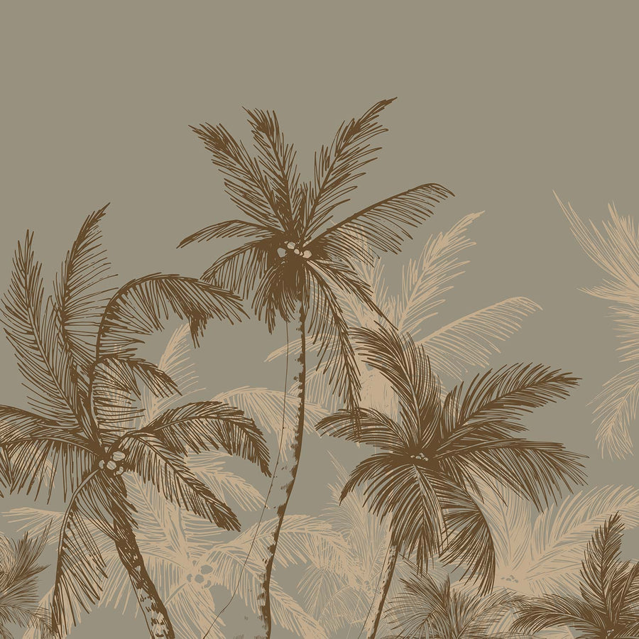 Palm Tree Haze Wallpaper Mural - Soft, atmospheric, and effortlessly cool, this wallpaper mural captures the dreamy allure of swaying palm trees veiled in a gentle golden hour haze.