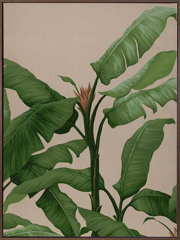 Panama II Canvas Art Print: Part two of a tropical inspired mural piece featuring lush, green banana palms on a warm nude backdrop. Designed to be displayed as a triptych with Panama I & III. 2018 AUTUMN/WINTER COLLECTION: CONTINUUM