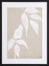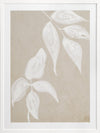 Paper Bark I Framed Print: A soft, neutral artwork that features a white ink monoprint of a leaf on a parchment style background. Pairs with Paper Bark II & III. 2019 AUTUMN/WINTER COLLECTION: ODYSSEY