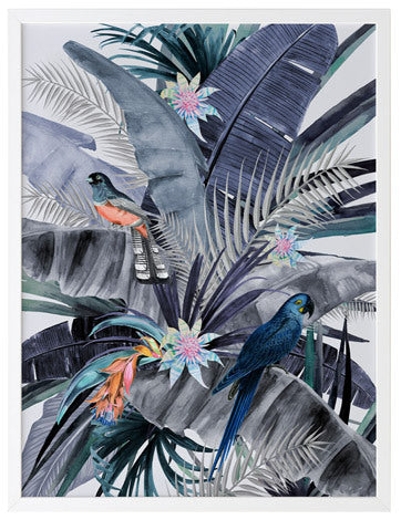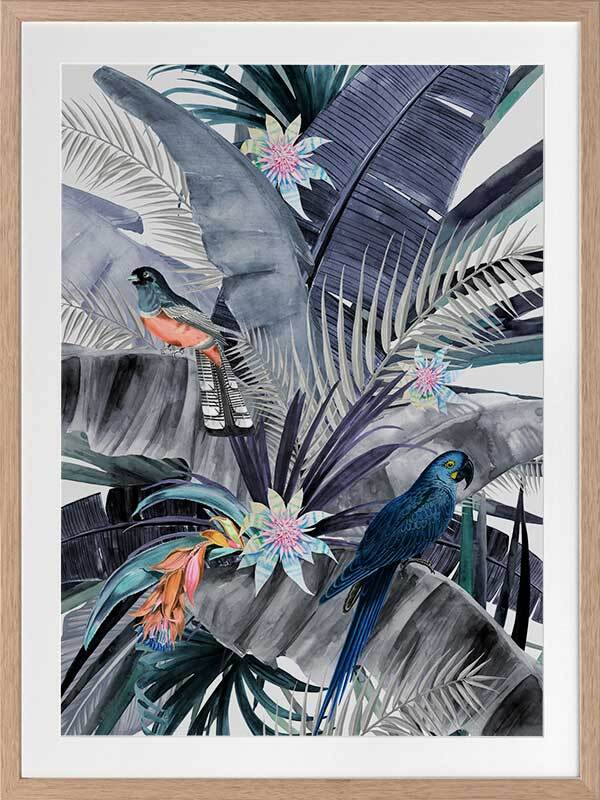 Paradise Dusk Framed Print: A tropical explosion brings the life and colour of the rainforest at dusk into your home. 2016 SPRING/SUMMER COLLECTION: ELEMENT