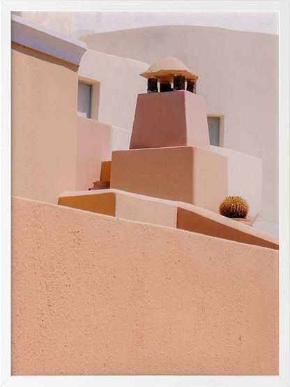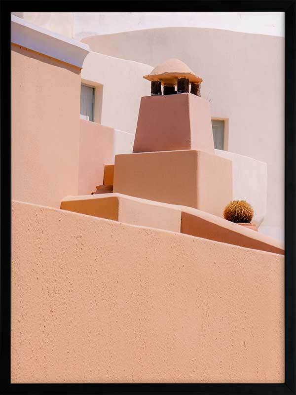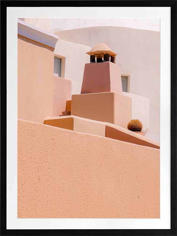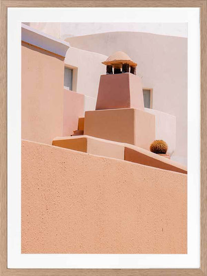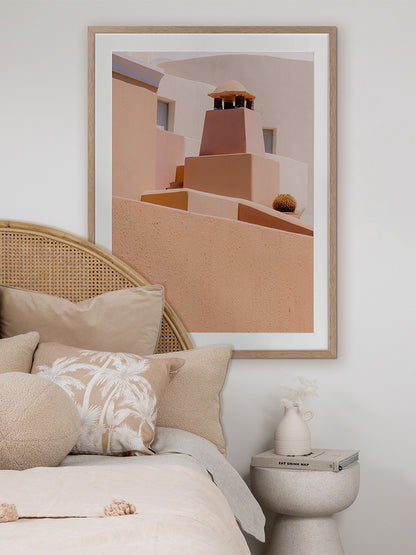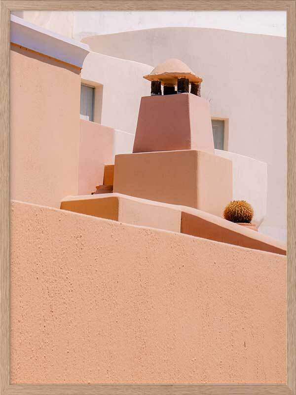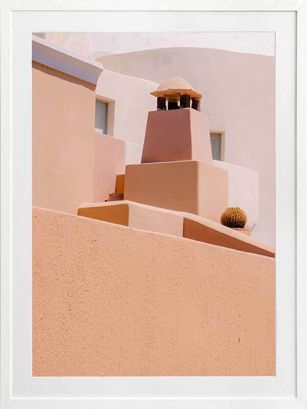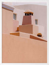Pastel Marrakech Framed Art Print - Feel transporated with this Moroccan, Marrakech inspired architecture featuring different wall textures. The colour palette is different tones of pastel oranges and pinks.