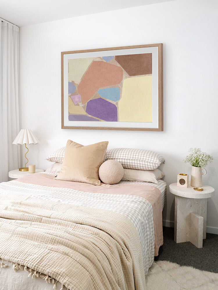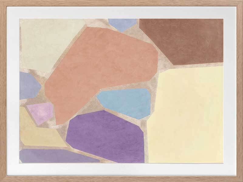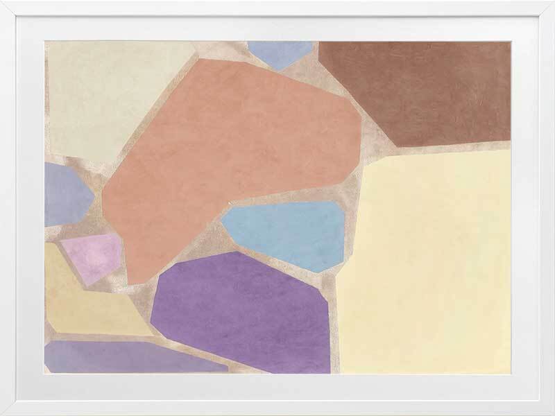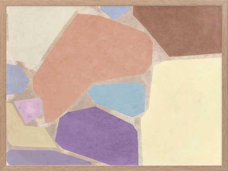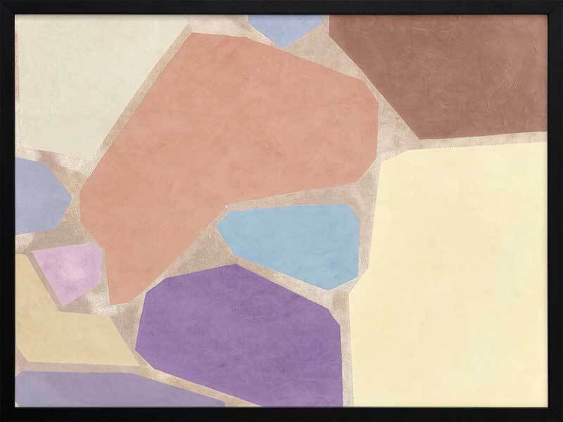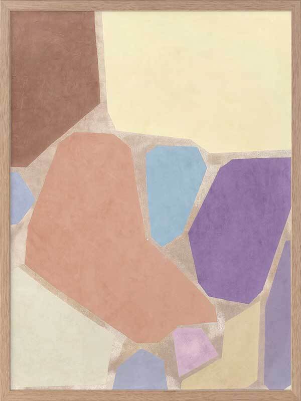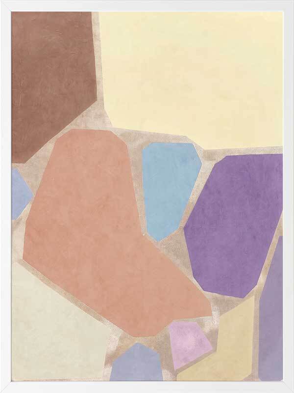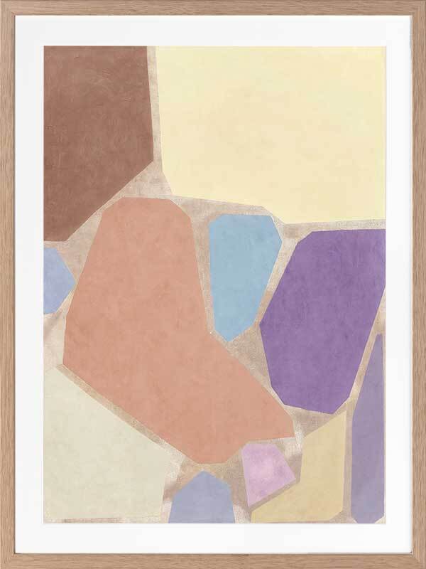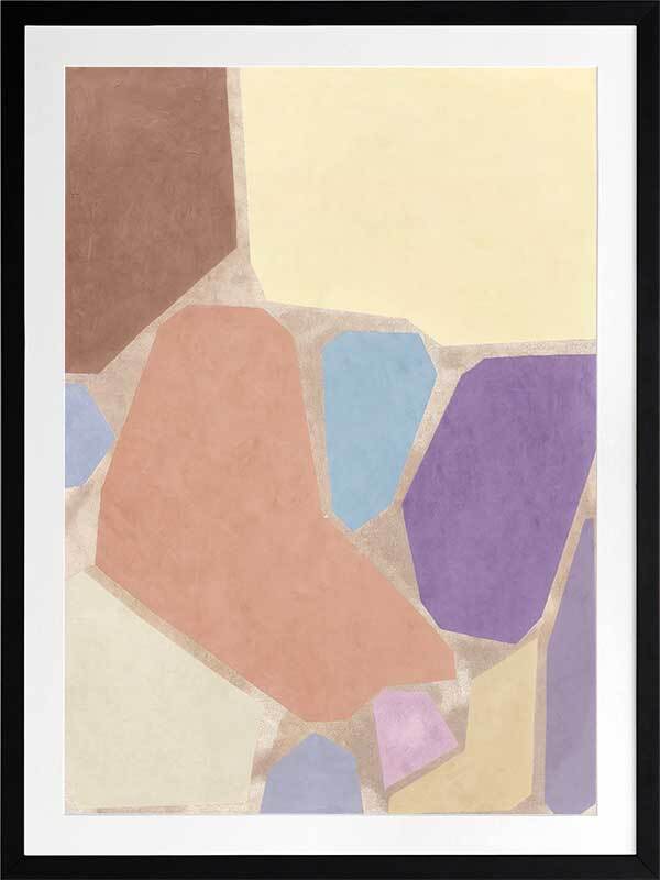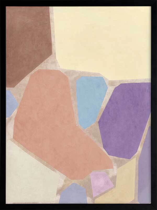 Pastel Mosaic II Framed Art Print - This abstract artwork, a symphony of pastel shades, brings a touch of mid-century modern elegance to any space. With its harmonious blend of soft yellows, pinks, and blues, and fluid, organic shapes, this wall art evokes a fresh, calming vibe - perfect for enhancing any living room or bedroom.