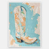 Pastel Rodeo Unframed Art Print - Inspired by abstract composition, this American Western-themed artwork is like no other with a bright, playful palette of pastel blue and orange, balanced by cream hues. This single cowboy boot is a symbol of the free-spirited energy of the Wild West, bringing a sense of whimsy to your home.