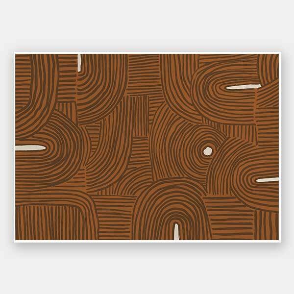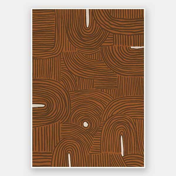 Pathways Unframed Art Print - All of us are on our own path, but many of us meet those we love along the way. A mesmerizing abstract piece, this artwork features detailed linework, compiled to form a random pattern, no two lines the same to bring a relaxed look and feel. Palette includes a terracotta brown backdrop, with brown lines and touches of creamy white.
