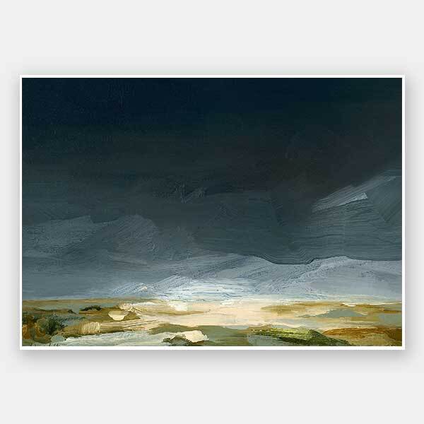 Peace in the Storm Unframed Art Print - A truly moody masterpiece, this artwork so beautifully portrays the calm before the storm - you can almost smell the rain coming from a distance. Deep blue and grey tones provide a seamless contrast with lighter green and beige shades, making this piece ideal for any interior style.