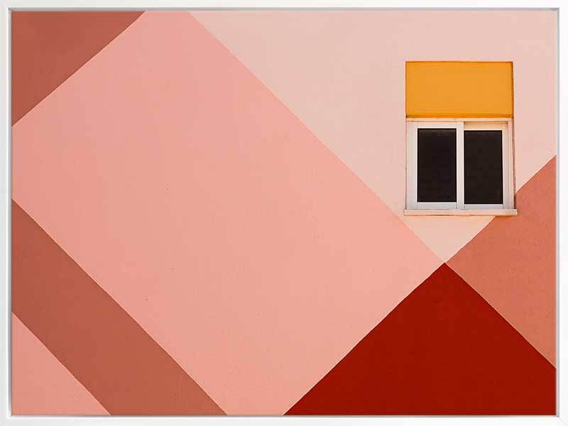Peachy Views Art Print - A bright scene of an external wall of a house. The reds, yellows and peach shades of this house all compliment each other so well. Bring the quirky European building design into your space with this photographic art print. THE CURATED SERIES II A handpicked gallery of wall art photography that is daringly and quirky, these photographic pieces are exploding with richness of colour and texture.