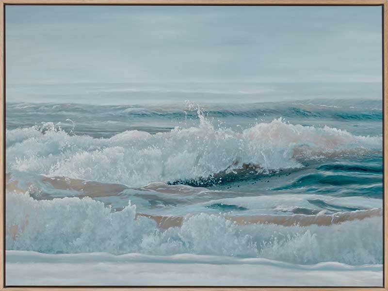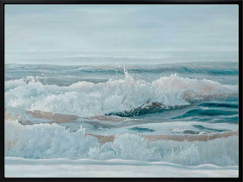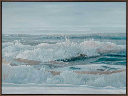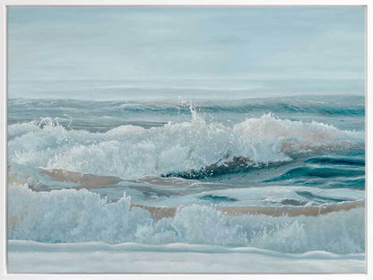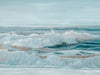 Pebbly Beach Canvas Art Print: A wonderfully detailed hand painted art print featuring foamy, rolling waves against a seashore. This is a print of an original hand painted oil painting with small detailed brush strokes on canvas. 2020 AUTUMN/WINTER COLLECTION: REVERIE