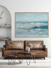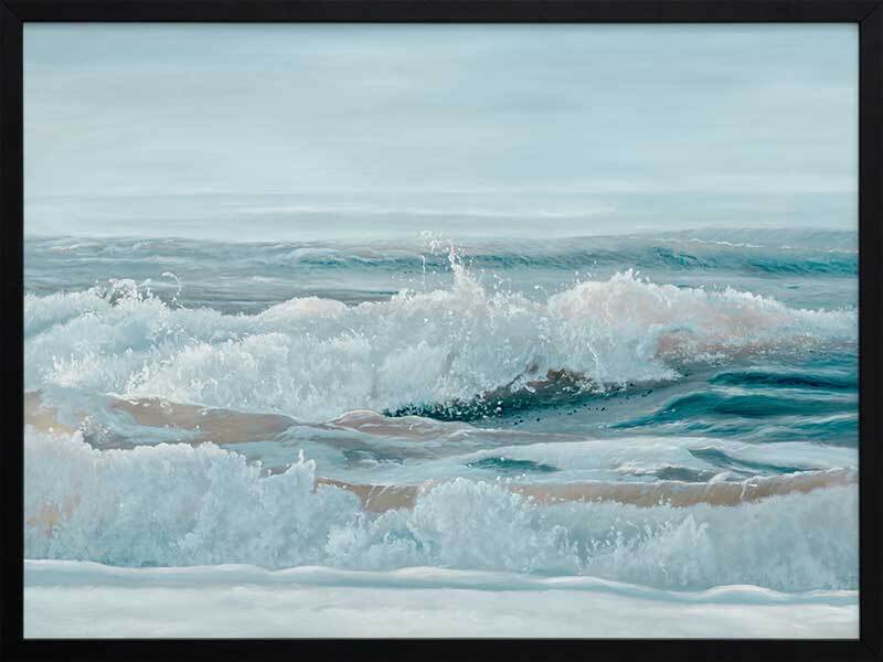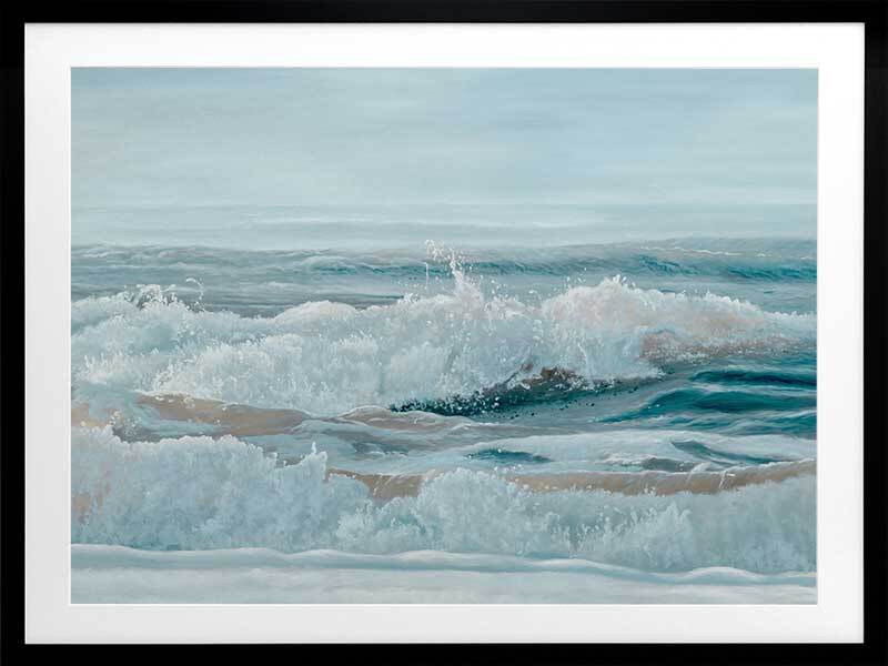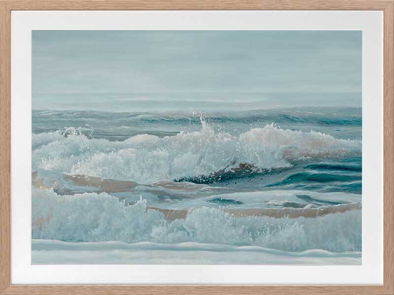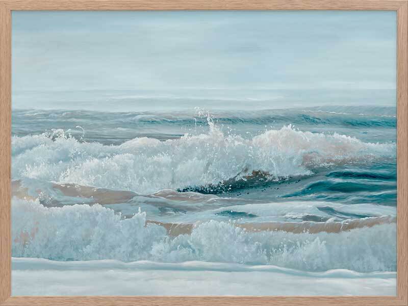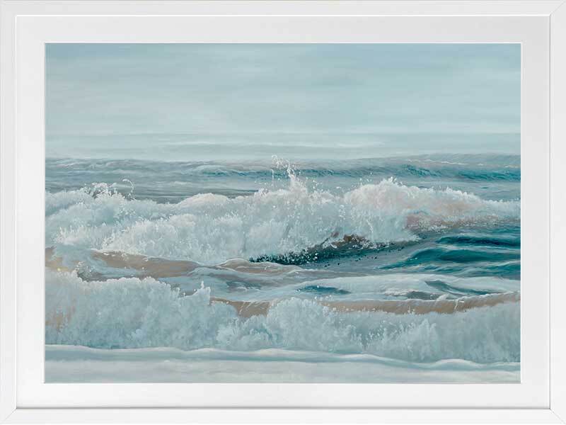 Pebbly Beach Framed Print: A wonderfully detailed hand painted art print featuring foamy, rolling waves against a seashore. 2020 AUTUMN/WINTER COLLECTION: REVERIE