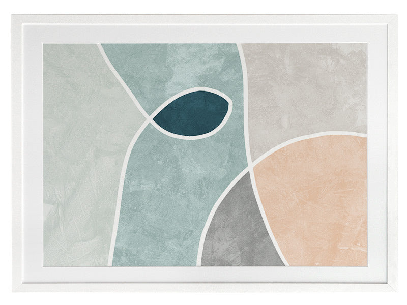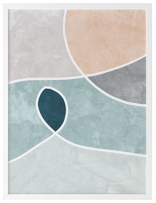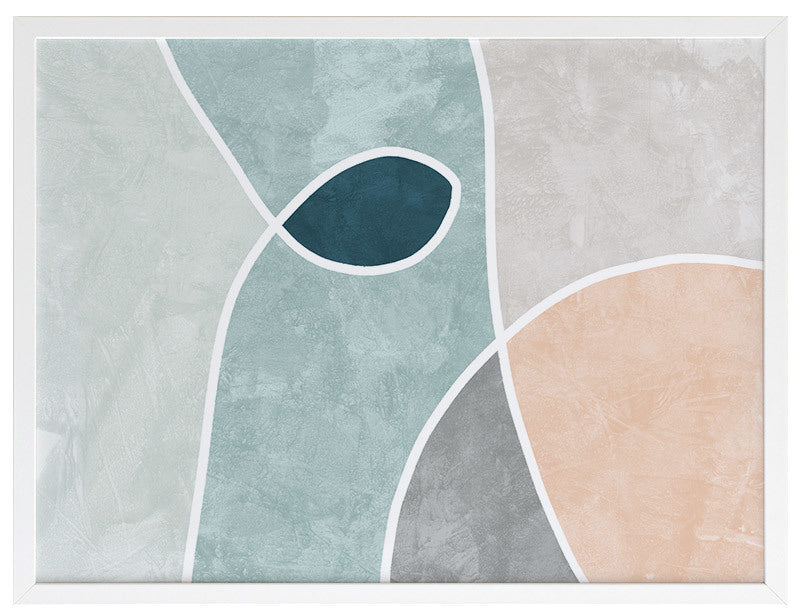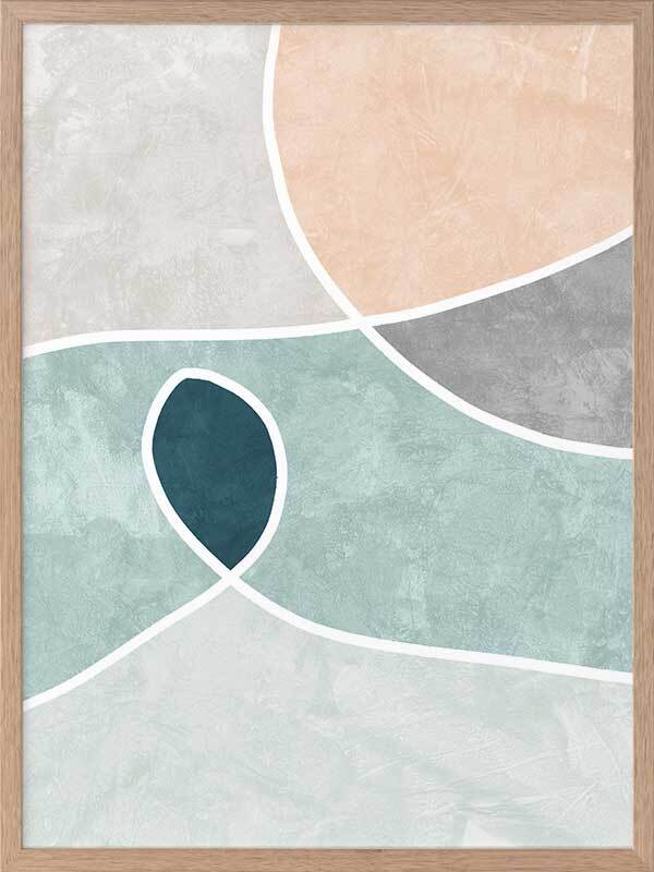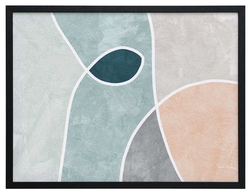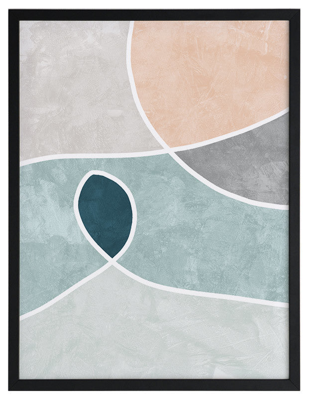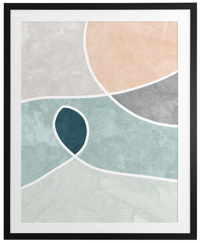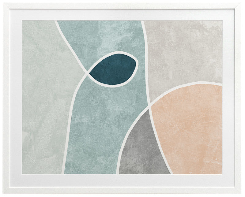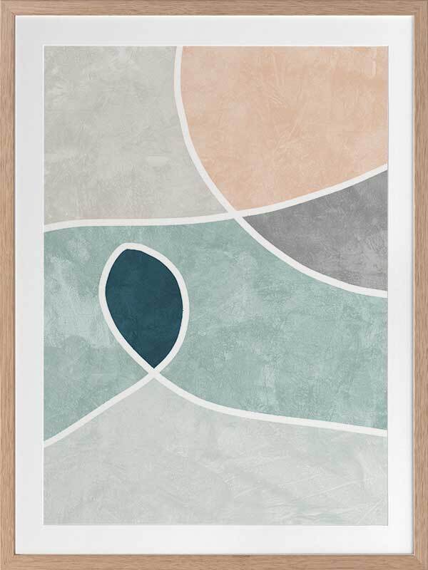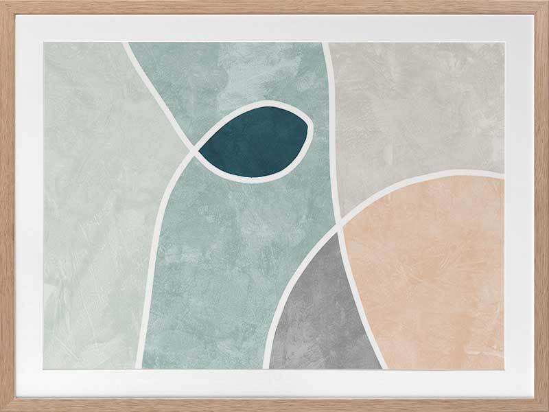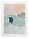 Peggy Framed Print: A retrospective minimalistic artwork that explores overlapping geometric shapes and forms in pale blue, grey and blush. Companion piece to Betty. 2018 AUTUMN/WINTER COLLECTION: CONTINUUM