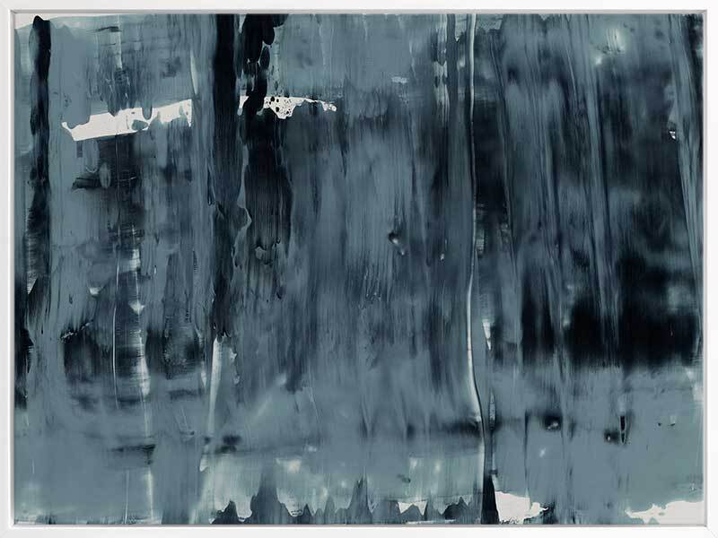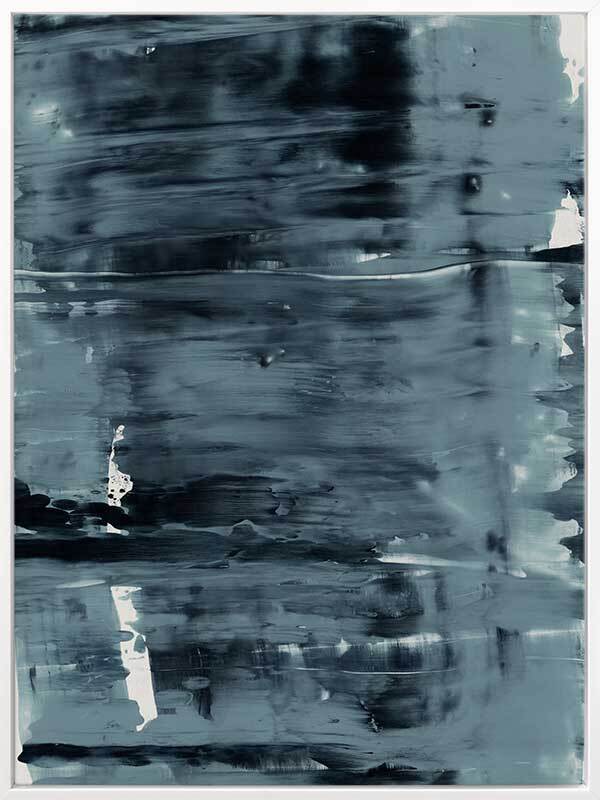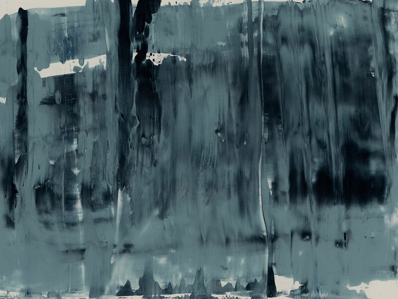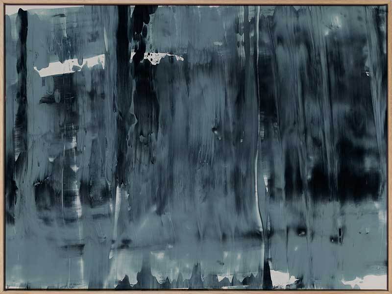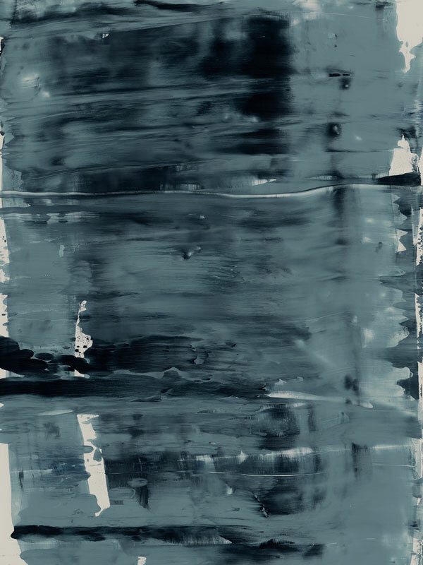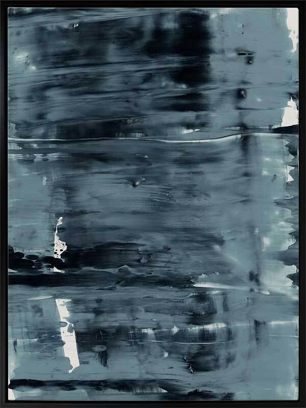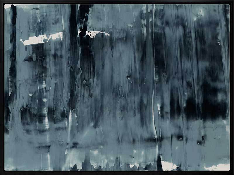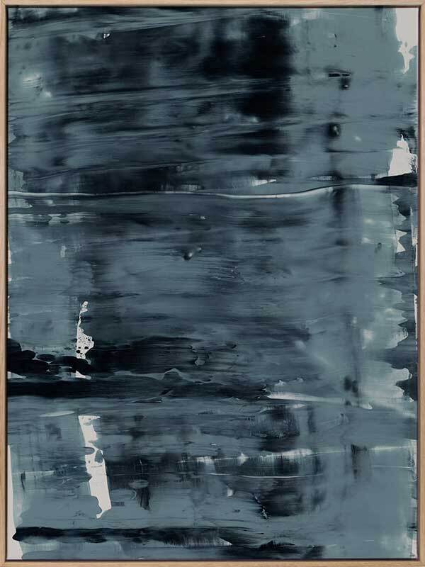 Pepper Tree Canvas Art Print: An abstract artwork featuring broad, linear, squeegee strokes in a smoky blue palette with flecks of navy. Pairs with Gralyn. 2019 AUTUMN/WINTER COLLECTION: ODYSSEY