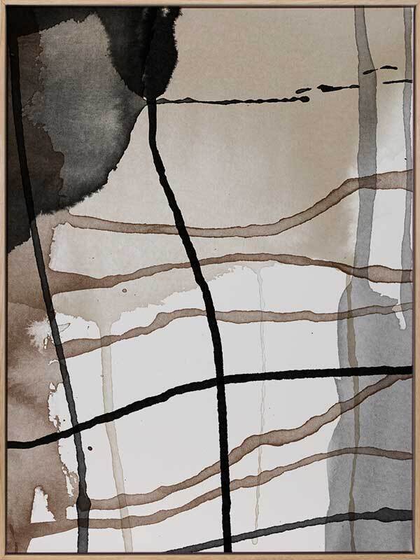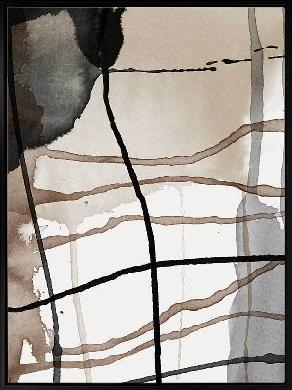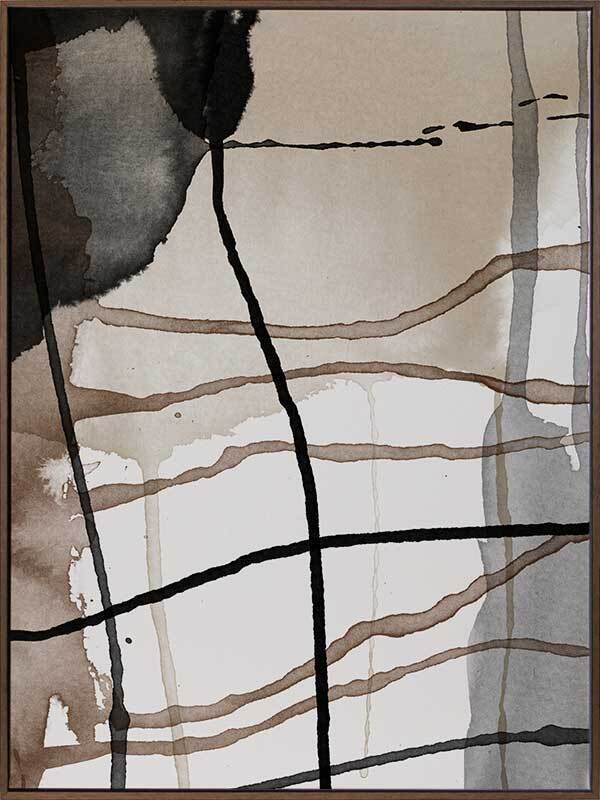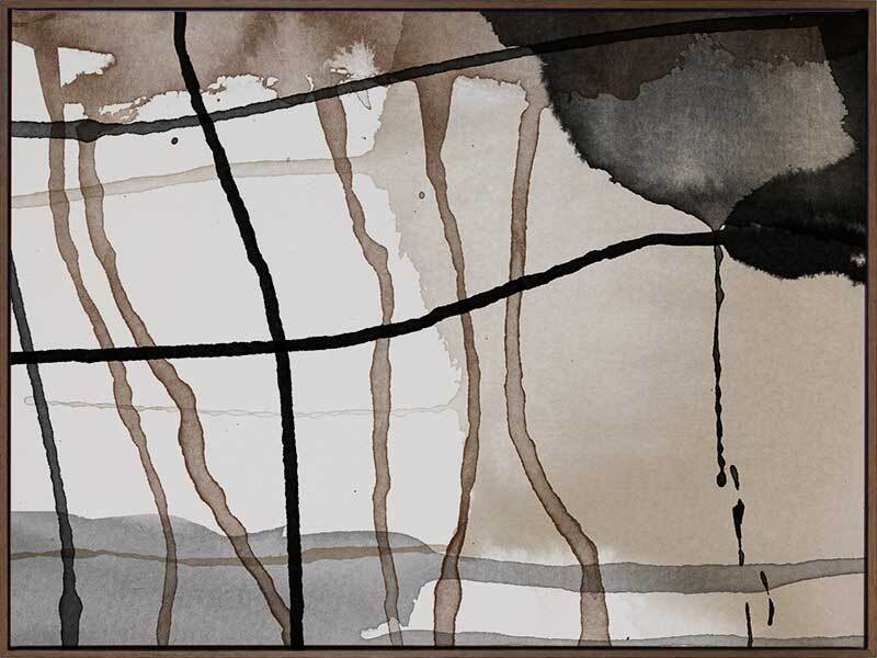 Perpetual Autumn Canvas Art Print: A multi-layered abstract artwork showcasing cool toned brown and black watercolour splashes and drips. Pairs with Eternal Autumn. 2018 AUTUMN/WINTER COLLECTION: CONTINUUM