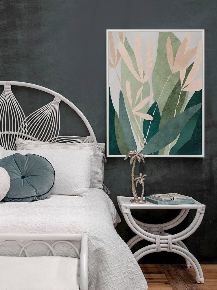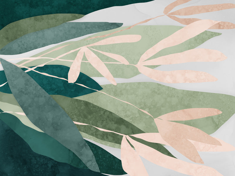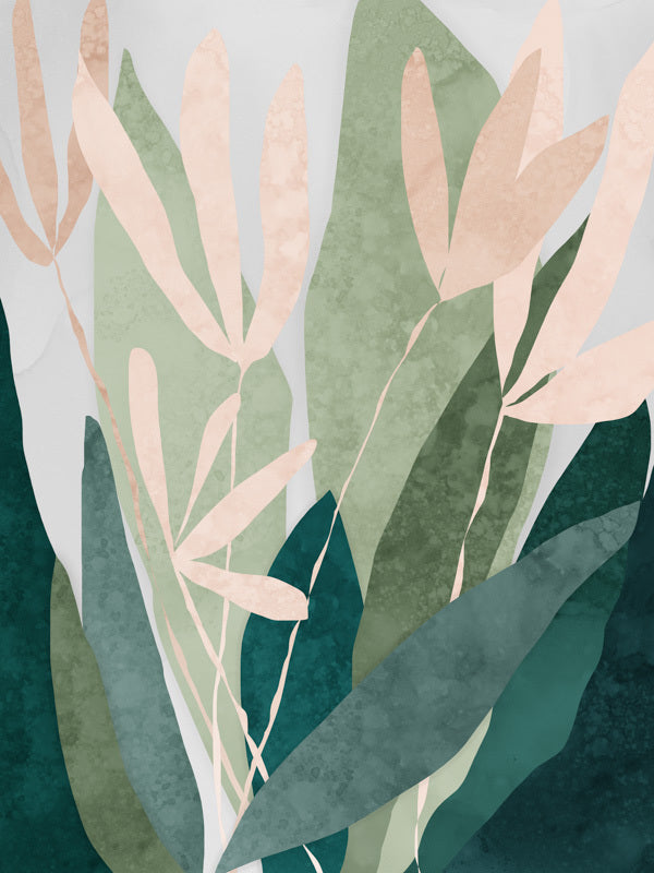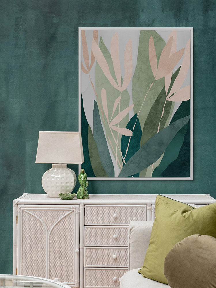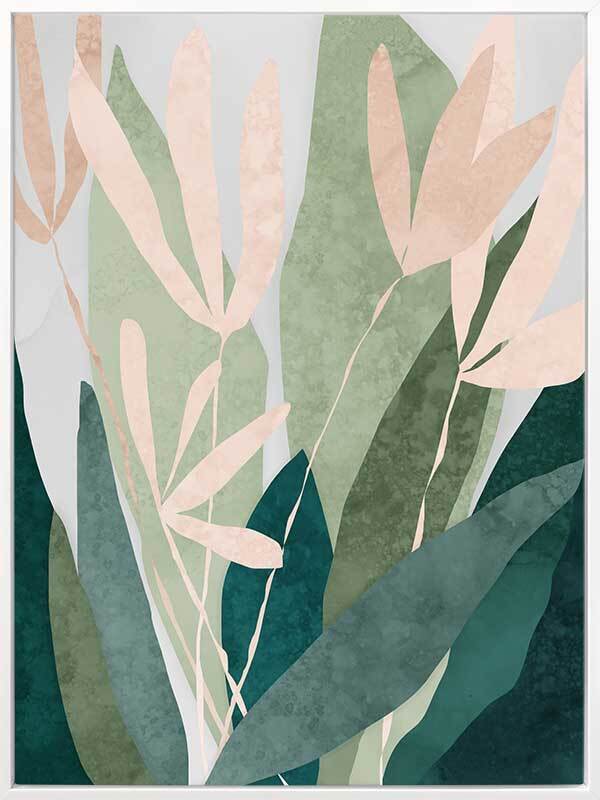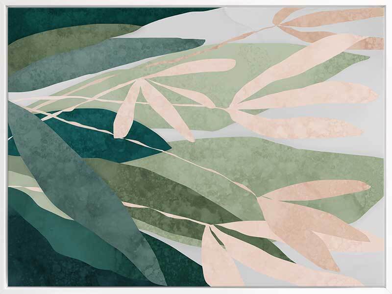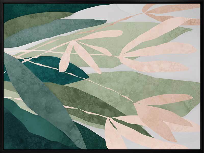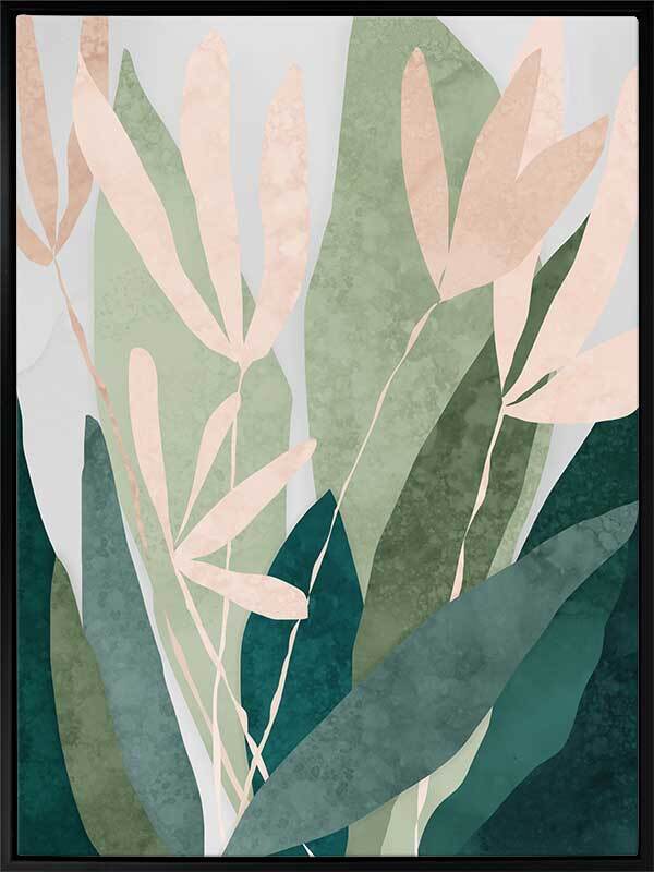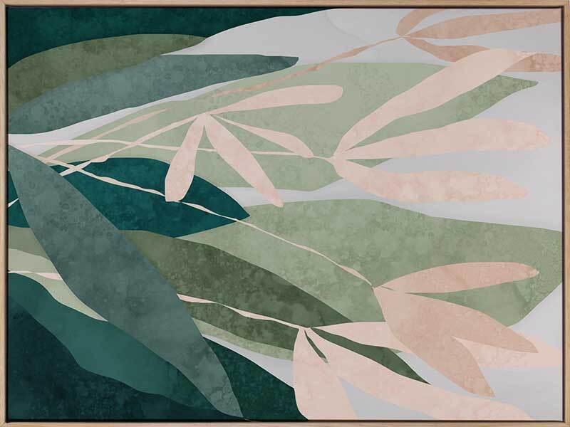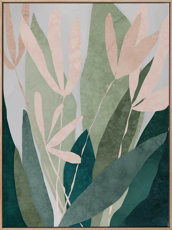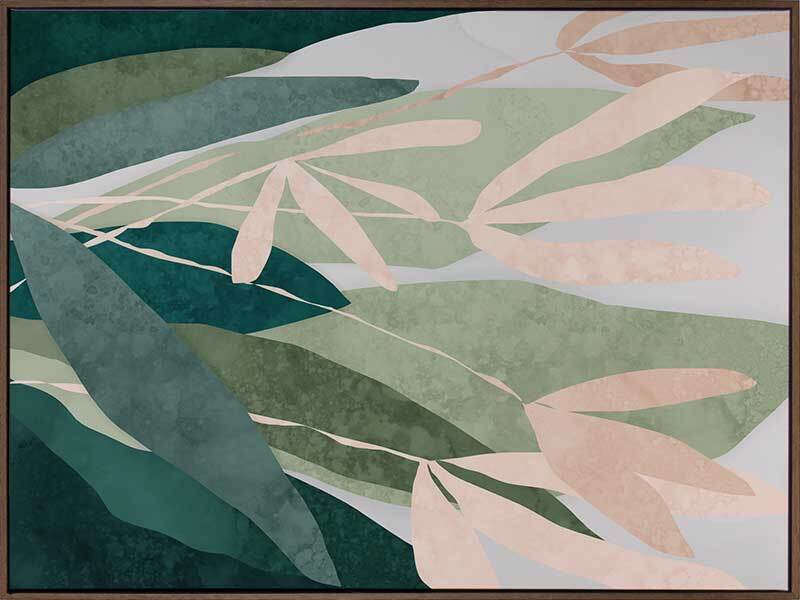 Pink Ladies Canvas Art Print: A delicate overlay of textured flowers and leaves in a fresh teal, and soft pink colour palette. 2020 AUTUMN/WINTER COLLECTION: REVERIE