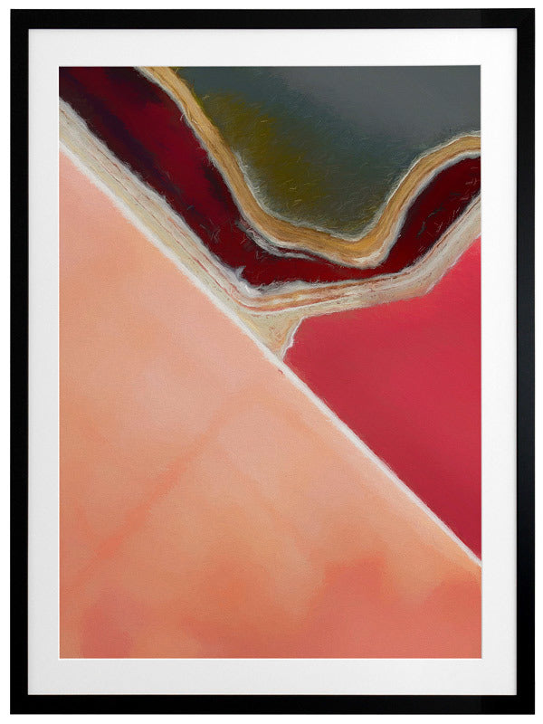 Pink Salt - An aerial artwork featuring rich, pink salt fields with contrasting lines and shapes. Introducing the latest addition to our Urban Road x Shaynna Blaze collaboration - IN PLANE VIEW Of the collection, Shaynna says, "It's inspired by my years of travel around Australia and overseas, staring out of a plane window and taking in the different shapes, patterns and palettes of the spaces below." A breathtaking showcase of aerial landscapes, capturing the rich colours, beautiful intricacies, and flowing forms of nature.