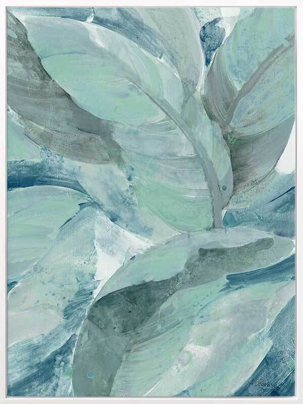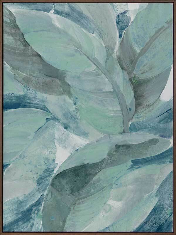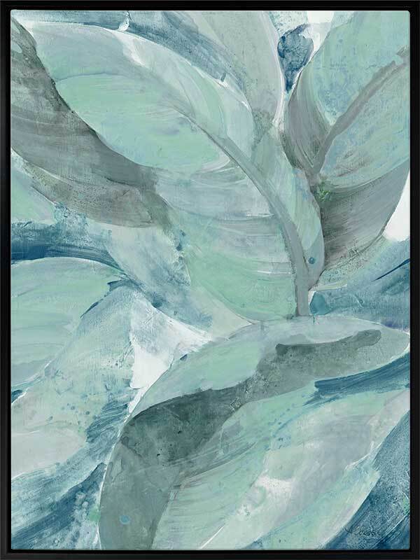Plantain II Canvas Art Print - Delicately organic paint strokes in a soft, dreamy palette of mint, sage and teal green form the shape of loose banana palm leaves in this Hamptons style artwork. Pairs with Plantain I.