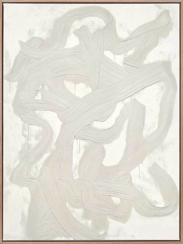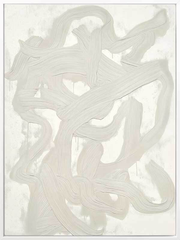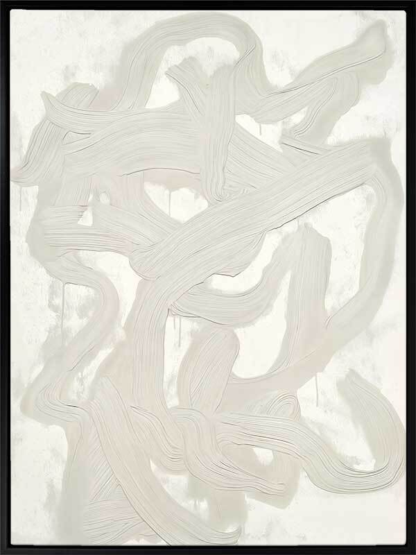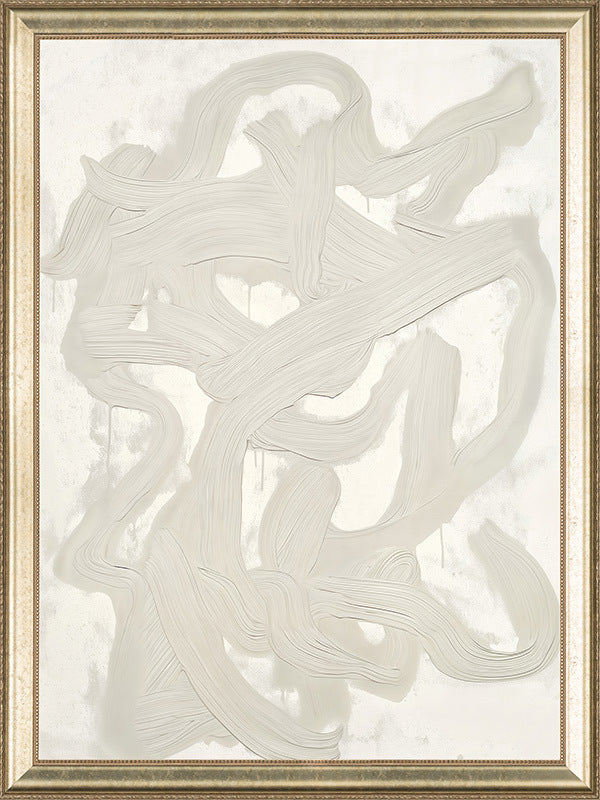 Poetry in Motion II Canvas Art Print - Let your space breathe with the fluidity of Darren Palmer's abstract art. This striking artwork features sweeping white brushstrokes that intertwine, creating a sense of movement and rhythm. The monochromatic palette allows it to seamlessly blend with any interior design style, adding a sophisticated touch to your home decor. Perfect for the bedroom or living room, this art print transforms your space with its dynamic energy and modern elegance.