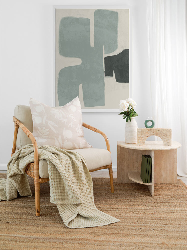 Surrounded by calming colours and scenery, this collection brings a relaxed energy to any space. Featuring softened abstract shapes, beachy landscapes, and some tropical undertones, these pieces bring a sophisticated, laid-back feel to your space, using a soft colour palette with some bold colour to easily incorporate with many interior styles.