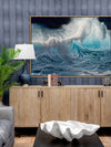 Racecourse Beach Canvas Art Print: A breathtaking print of a hand painted ocean, featuring large crashing waves. This is a print of an original hand painted oil painting with small detailed brush strokes on canvas. 2020 AUTUMN/WINTER COLLECTION: REVERIE