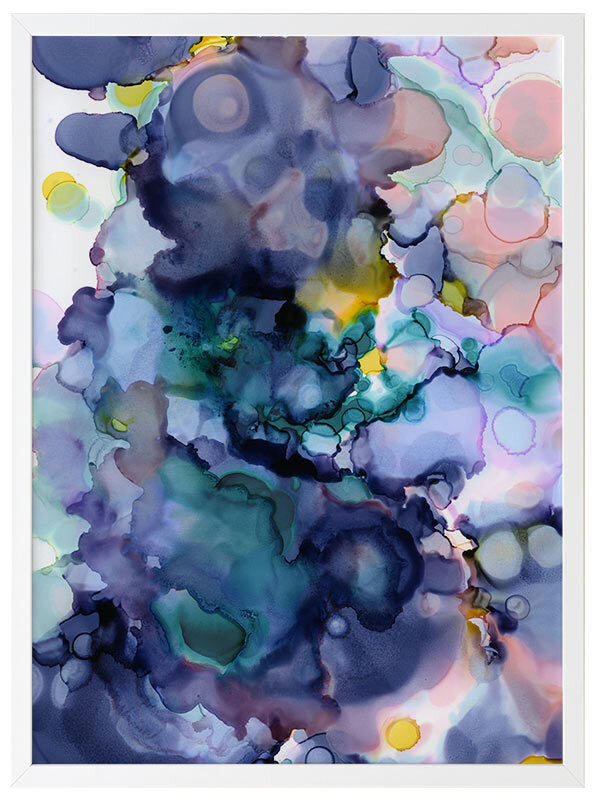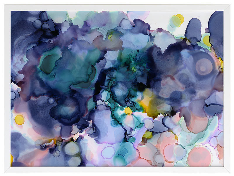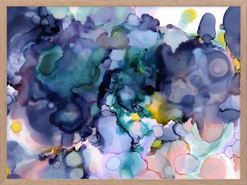 Raindrops 1 Framed Print: Winter makes its mark as the first blooms of spring emerge, creating a colourful pattern of droplets. Can be paired with Raindrops 2 or displayed individually. 2014 SPRING/SUMMER COLLECTION: THE FIRST COLLECTION
