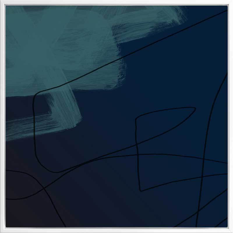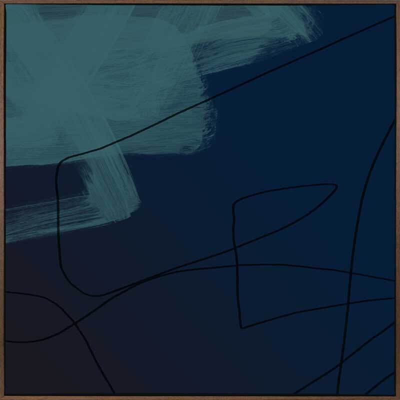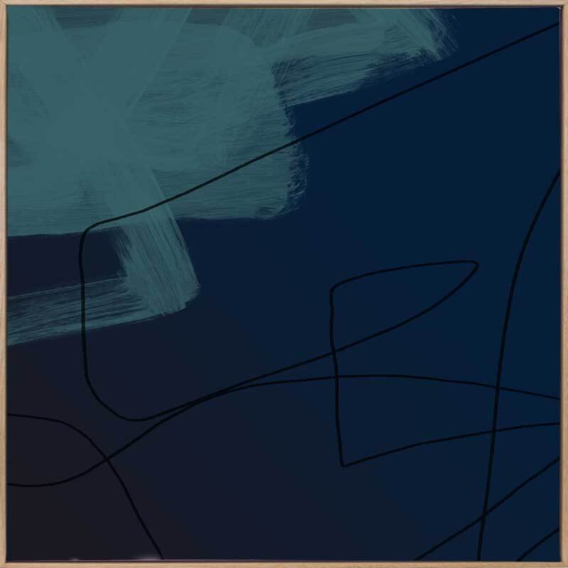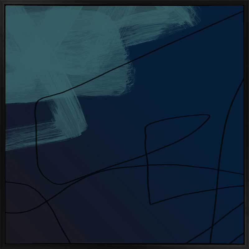 Recollect Canvas Art Print: A dark, moody abstract piece that explores shape, texture and movement in a deep blue and smoke palette. Works with Memoir and Narrate. 2018 AUTUMN/WINTER COLLECTION: CONTINUUM