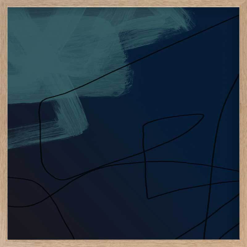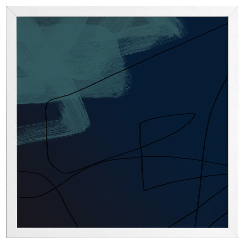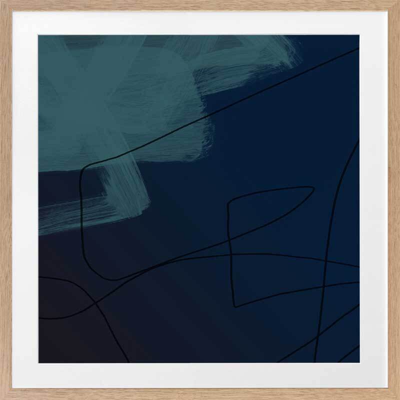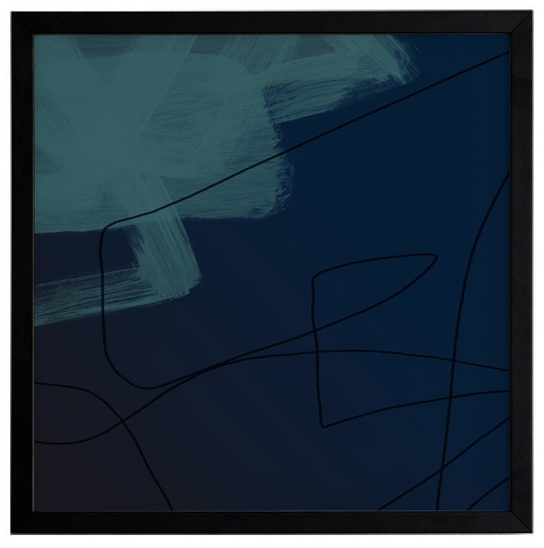 Recollect Framed Print: A dark, moody abstract piece that explores shape, texture and movement in a deep blue and smoke palette. Works with Memoir and Narrate. 2018 AUTUMN/WINTER COLLECTION: CONTINUUM