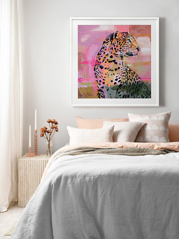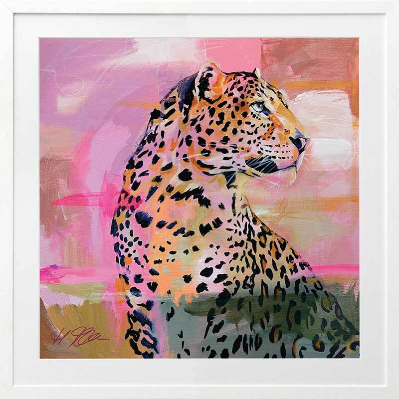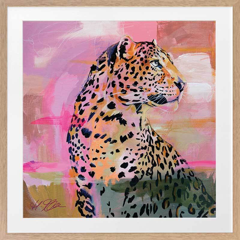 Reminiscent Bright Pink Framed Art Print - This showstopping piece makes a fierce statement in any space, sparking wonder and curiosity at what has this regal jaguar so intrigued. Featuring an invigorating palette of bright pinks and purples and unique blend of abstract and realism, this piece is easy to incorporate into any interior style.